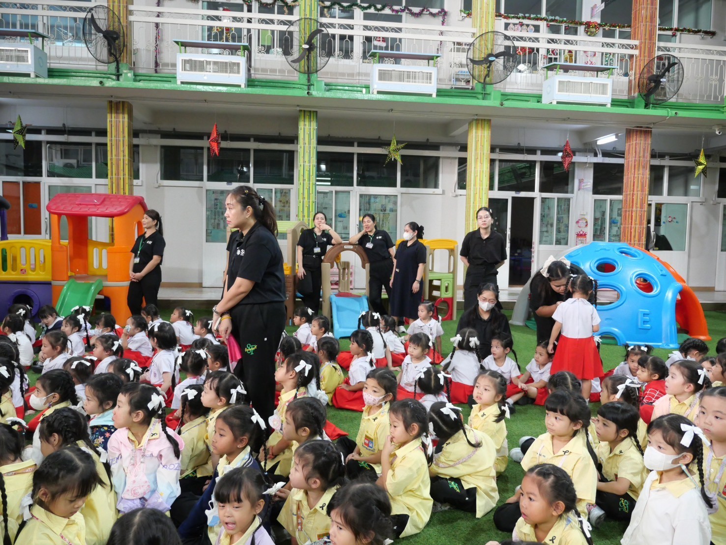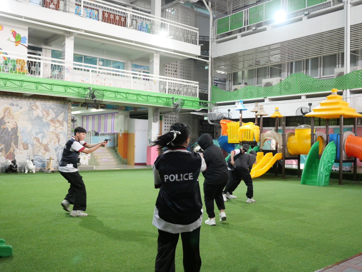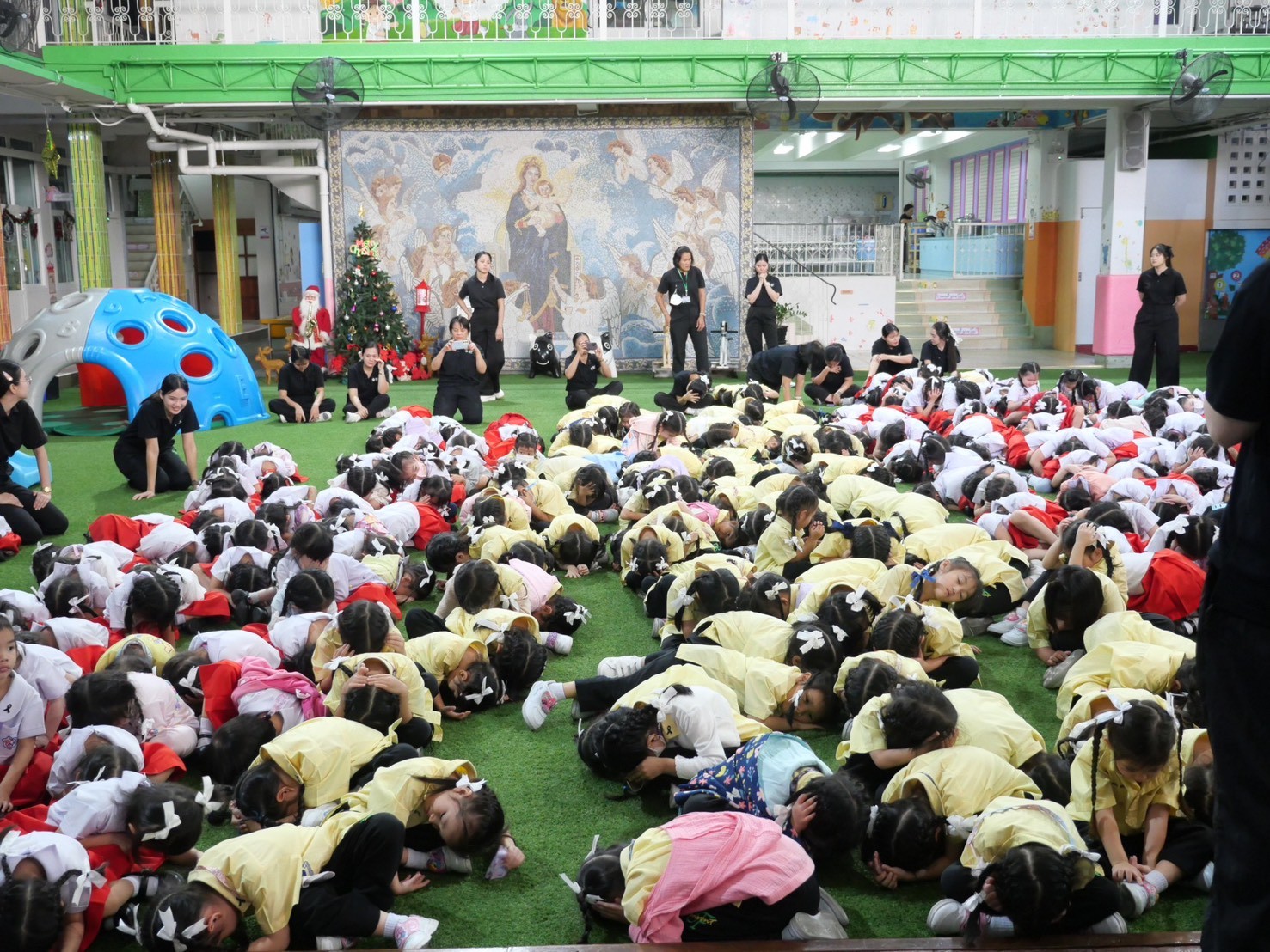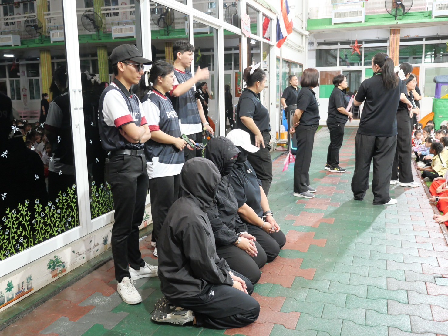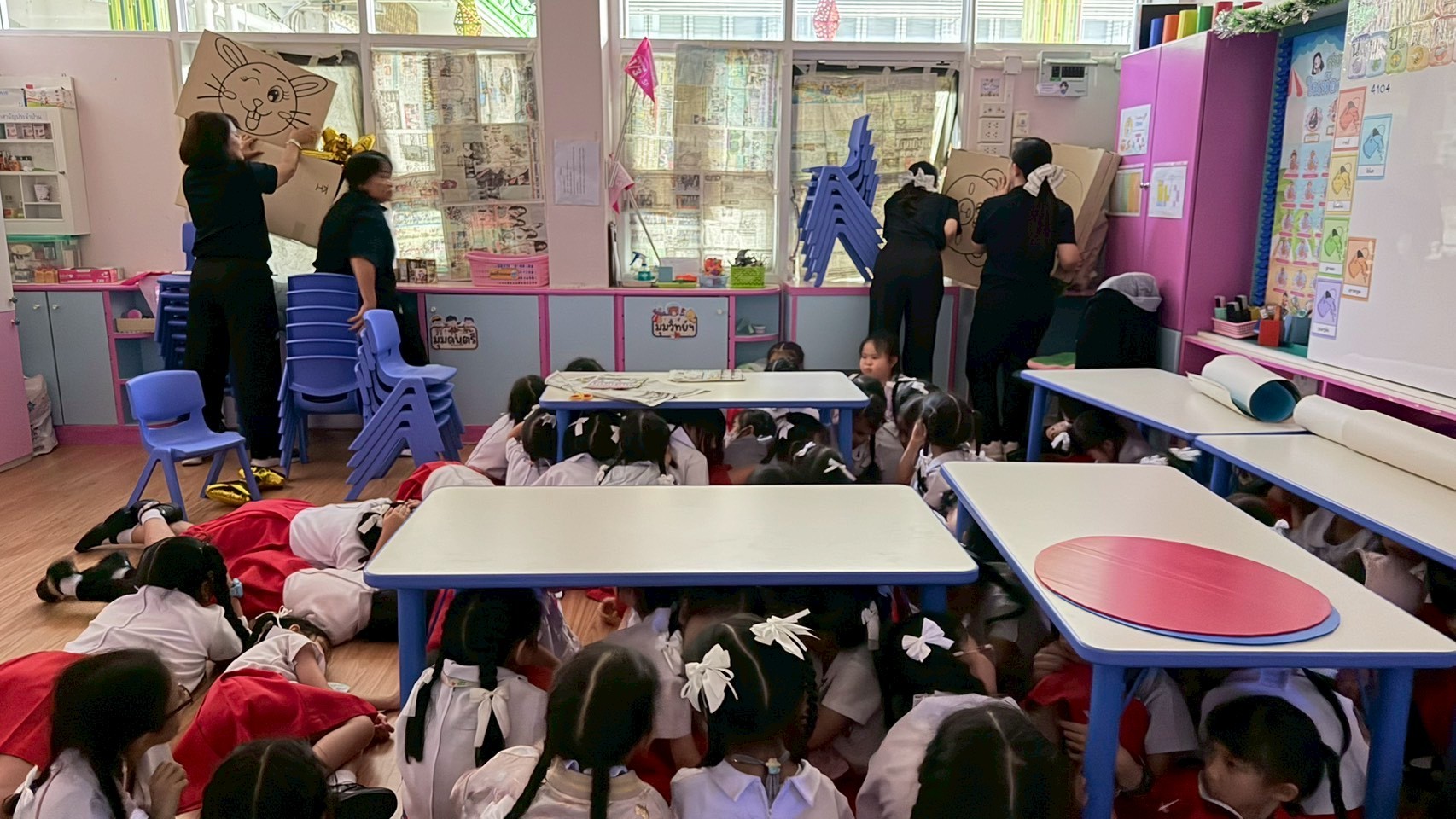 วันที่ 8 ธันวาคม 2568 แผนกปฐมวัย ร่วมกับฝ่ายกิจการนักเรียน ได้จัดกิจกรรมฝึกซ้อมวิธีการเอาตัวรอดจากเหตุกราดยิง ให้แก่คุณครูและเด็กๆ ระดับปฐมวัยปีที่ 1 – 3 โดยคุณครูได้นำความรู้จากวิทยากรกองบังคับการปราบปรามที่เคยมาอบรมให้แก่คุณครู มาจำลองสถานการณ์และฝึกซ้อมเพื่อเป็นแนวทางป้องกันช่วยเหลือเด็กๆ เมื่อเผชิญเหตุกราดยิง ให้สามารถเอาตัวรอดจากสถานการณ์นั้นๆ ได้อย่างถูกต้อง เหมาะสม