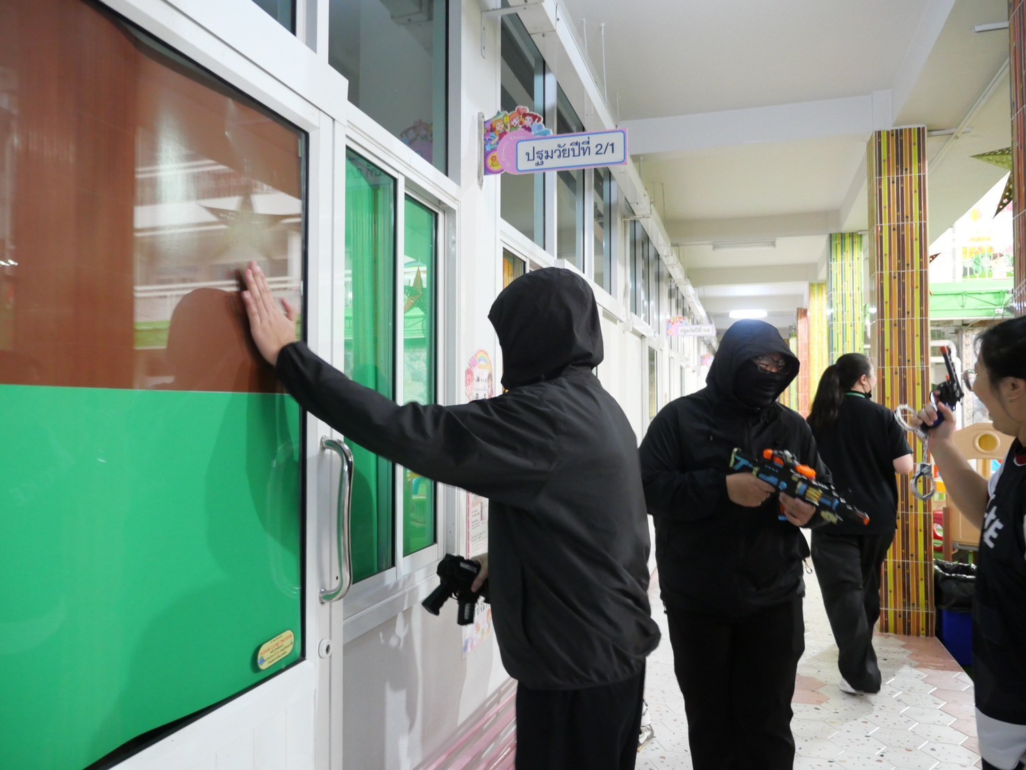 ฝึกซ้อมวิธีการเอาตัวรอดจากเหตุกราดยิง ระดับปฐมวัย