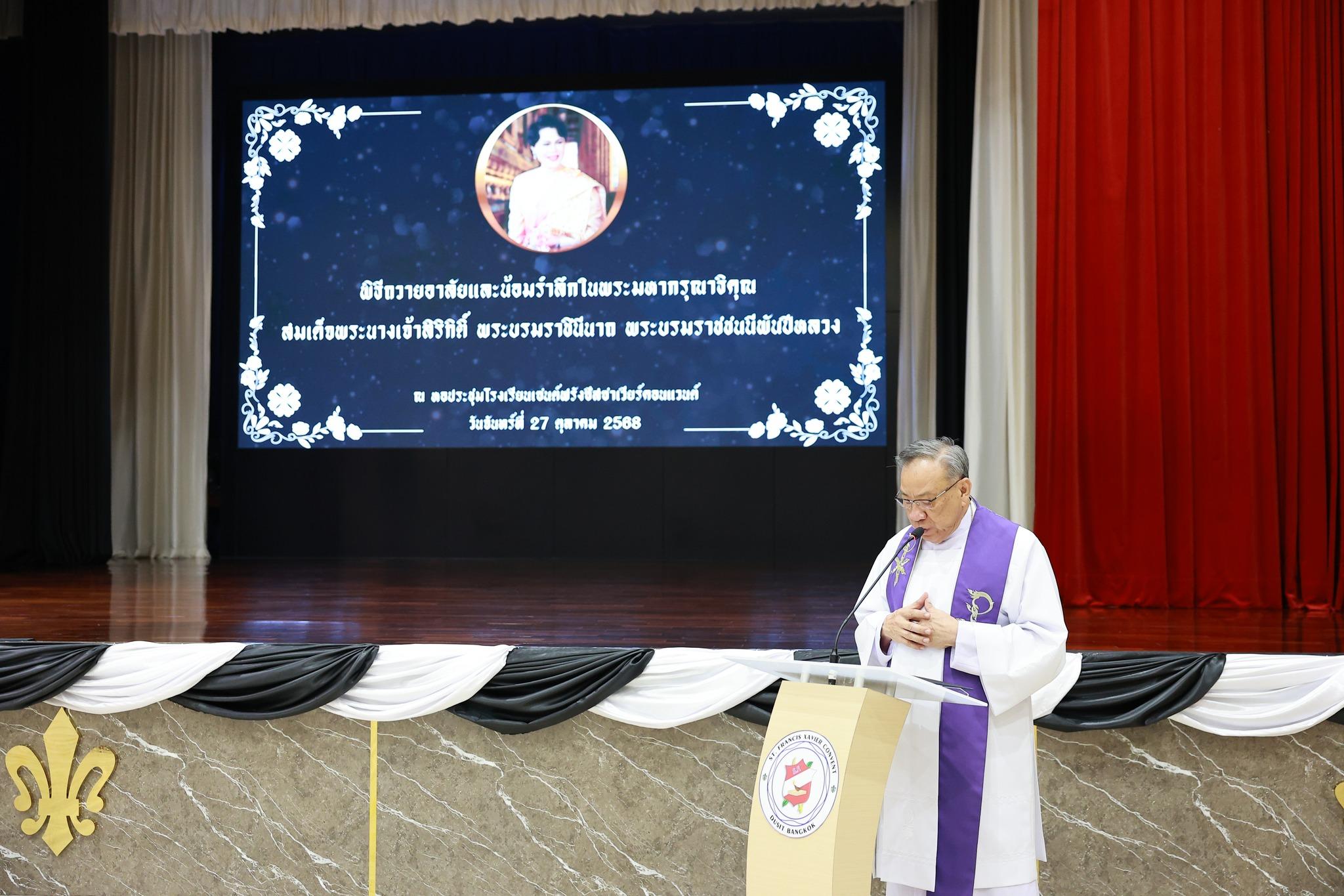วันจันทร์ที่ 27 ตุลาคม 2568 โรงเรียนเซนต์ฟรังซีสซาเวียร์จัดพิธีถวายอาลัยและน้อมรำลึกในพระมหากรุณาธิคุณ สมเด็จพระนางเจ้าสิริกิติ์ พระบรมราชินีนาถ พระบรมราชชนนีพันปีหลวง ซึ่งเริ่มต้นตั้งแต่ช่วงเช้าก่อนเคารพธงชาติ โดยมีเซอร์เบนิลดา สมจันทร์ กล่าวถวายอาลัย ก่อนที่ทุกคนจะร่วมกันยืนสงบนิ่ง 1 นาที เพื่อถวายเป็นพระราชกุศลแด่ดวงพระวิญญาณ
