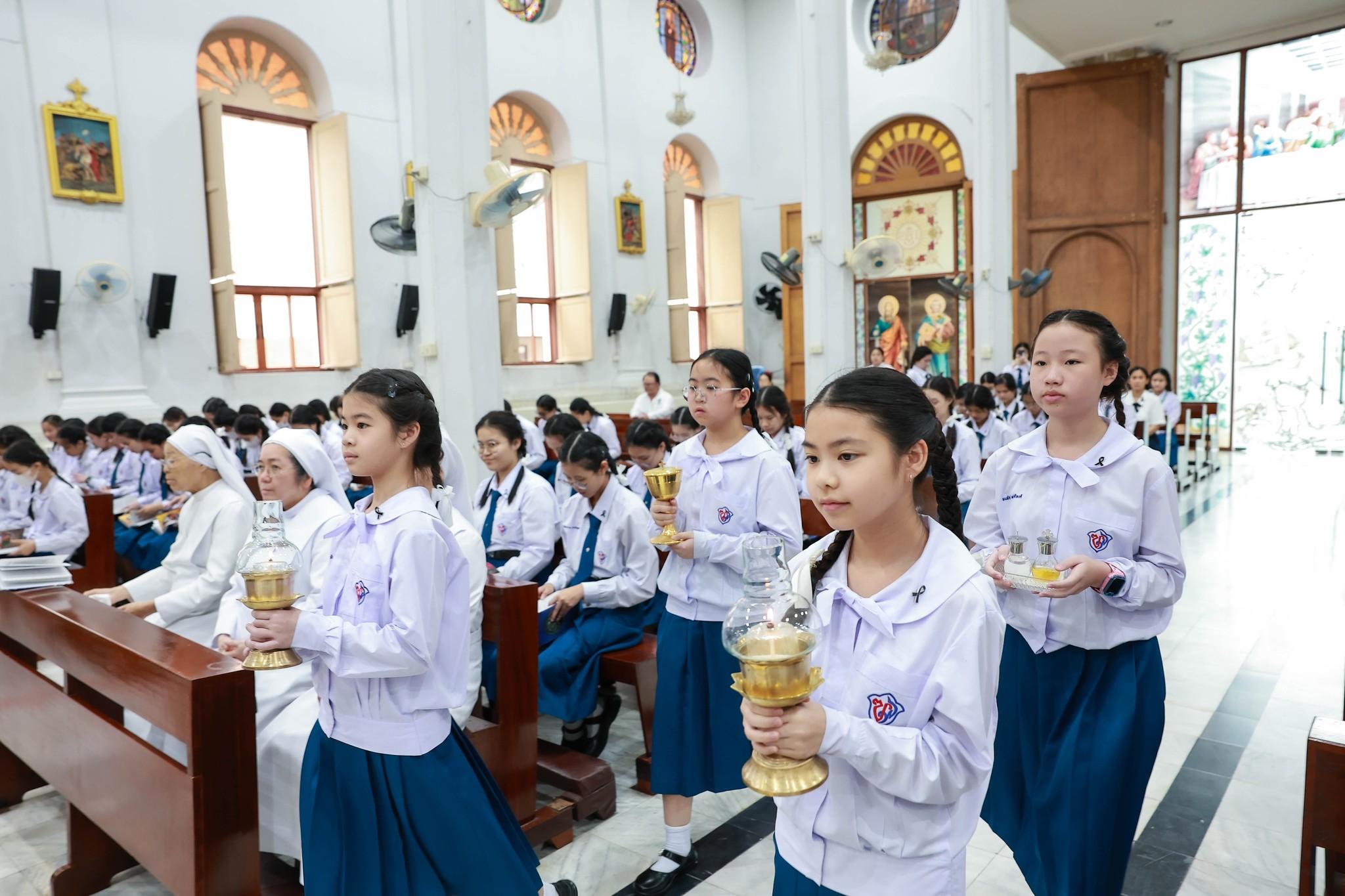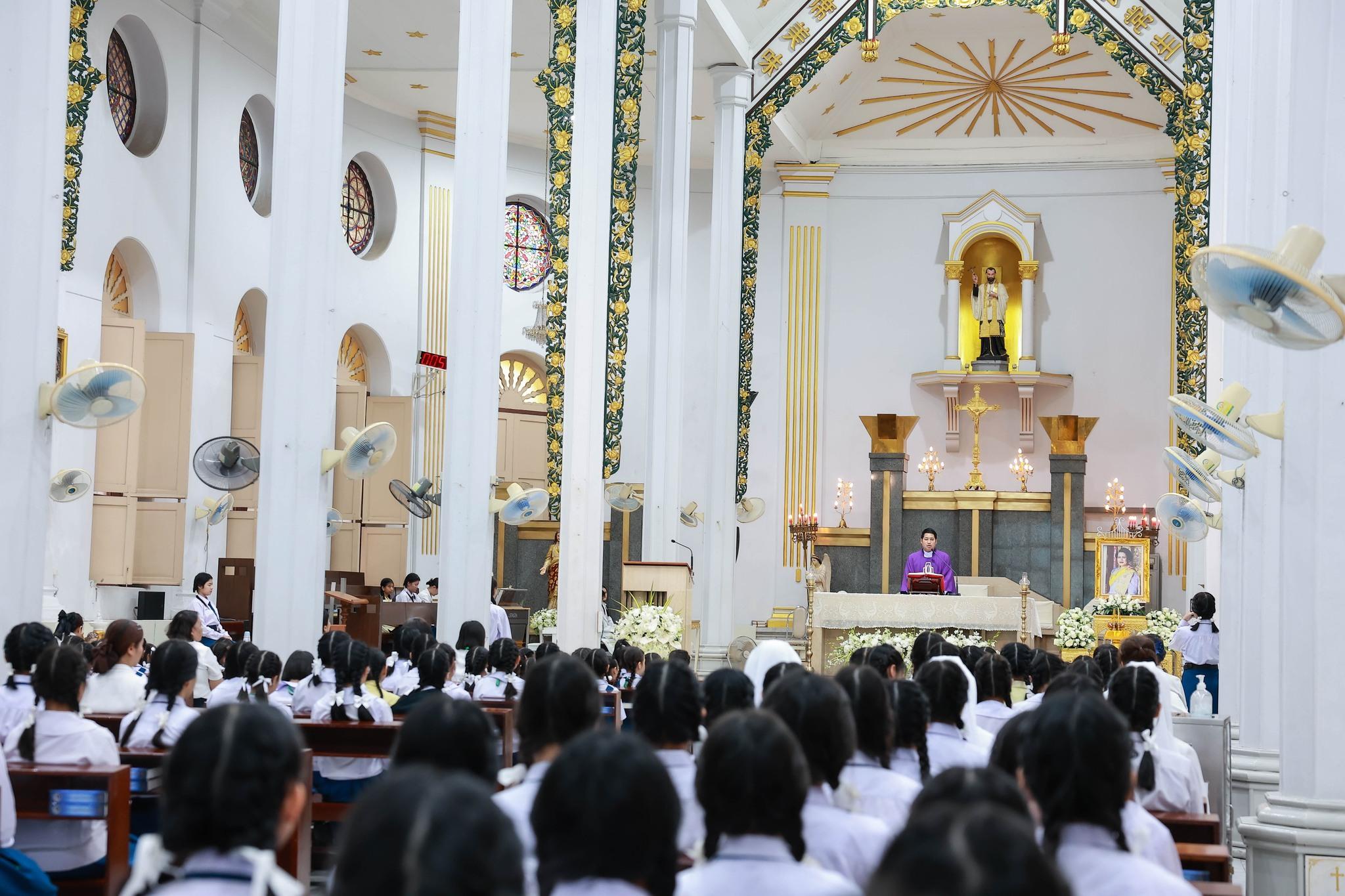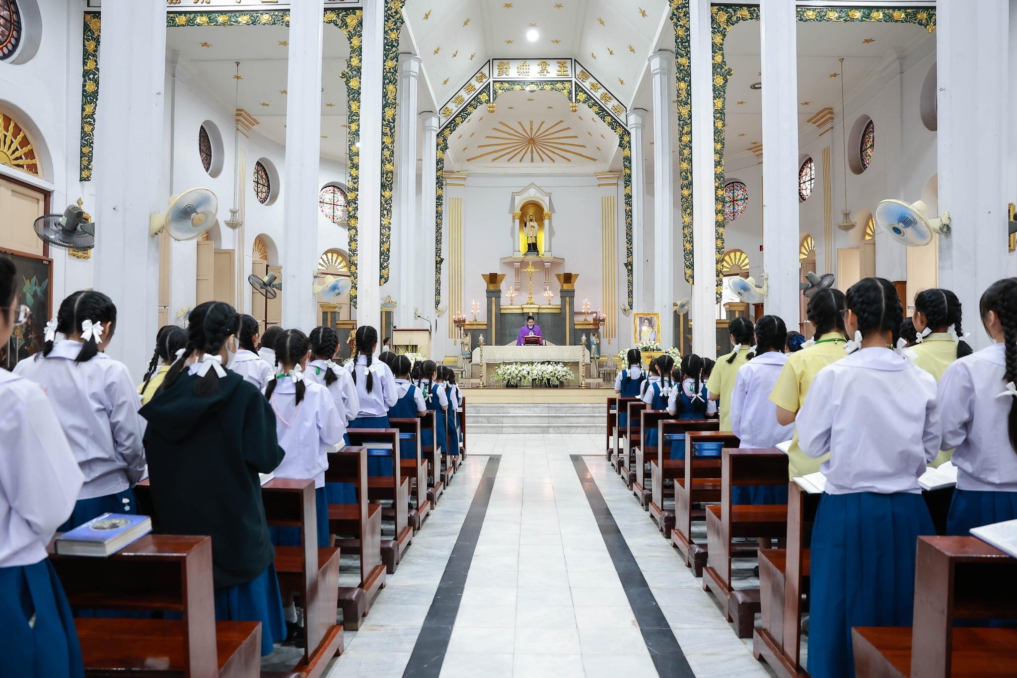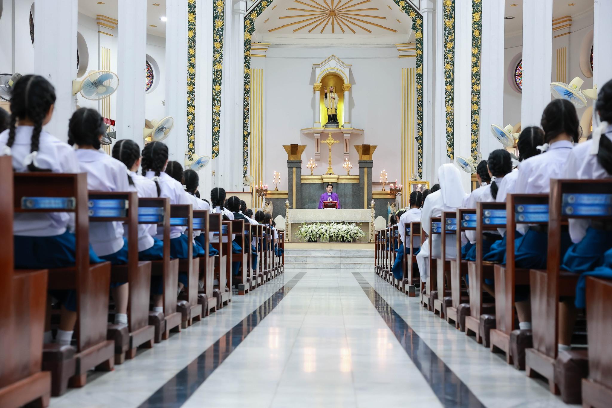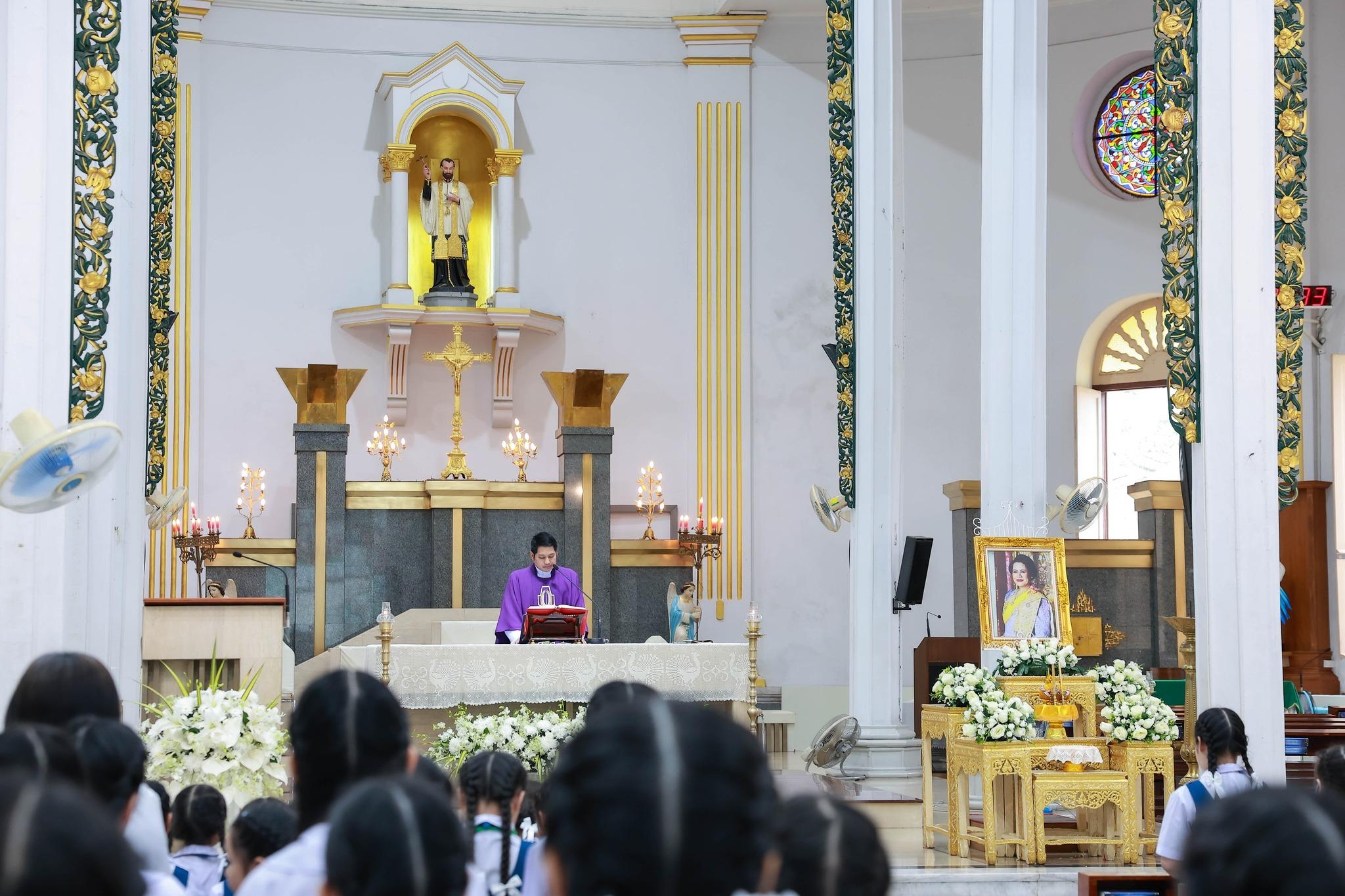 วันที่ 7 พฤศจิกายน 2568 ท่านอธิการิณีมารี หลุยส์ พรฤกษ์งาม พร้อมด้วยคณะเซอร์ คุณครูและนักเรียนคาทอลิก รวมทั้งตัวแทนคุณครูและนักเรียนทุกระดับชั้น ได้ร่วมพิธีบูชาขอบพระคุณ เพื่อน้อมรำลึกในพระมหากรุณาธิคุณ สมเด็จพระนางเจ้าสิริกิติ์ พระบรมราชินีนาถ พระบรมราชชนนีพันปีหลวง ในวาระสวรรคตครบ 15 วัน (ปัณรสมวาร) ณ วัดนักบุญฟรังซิสเซเวียร์ สามเสน โดยได้รับเกียรติจากคุณพ่อยอห์น บัปติสต์ เทวฤทธิ์ สุขเกษม ผู้ช่วยเจ้าอาวาสวัดนักบุญฟรังซิสเซเวียร์เป็นประธานในพิธี