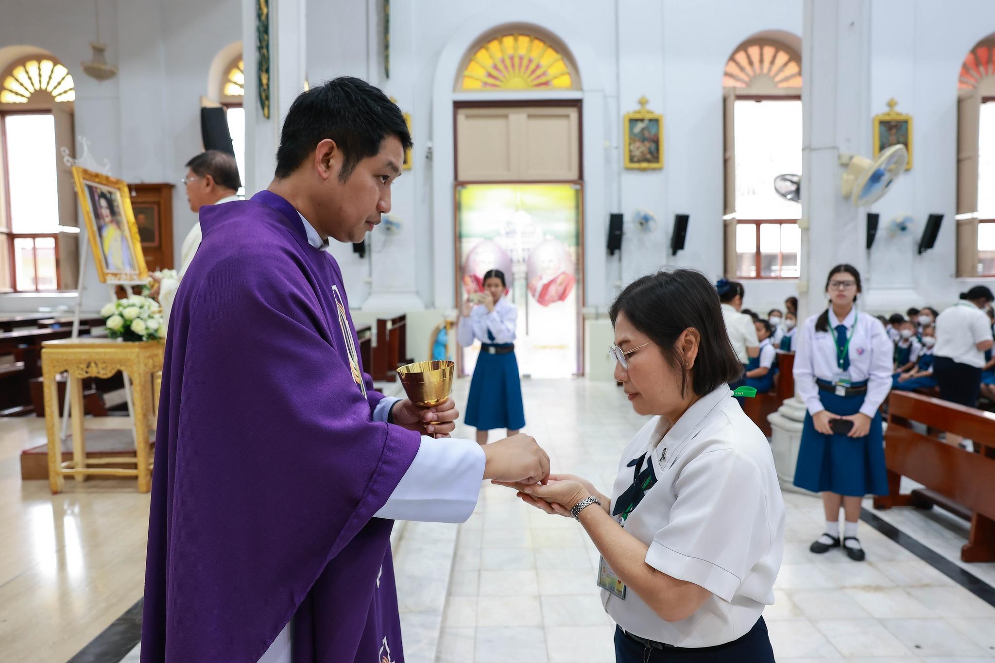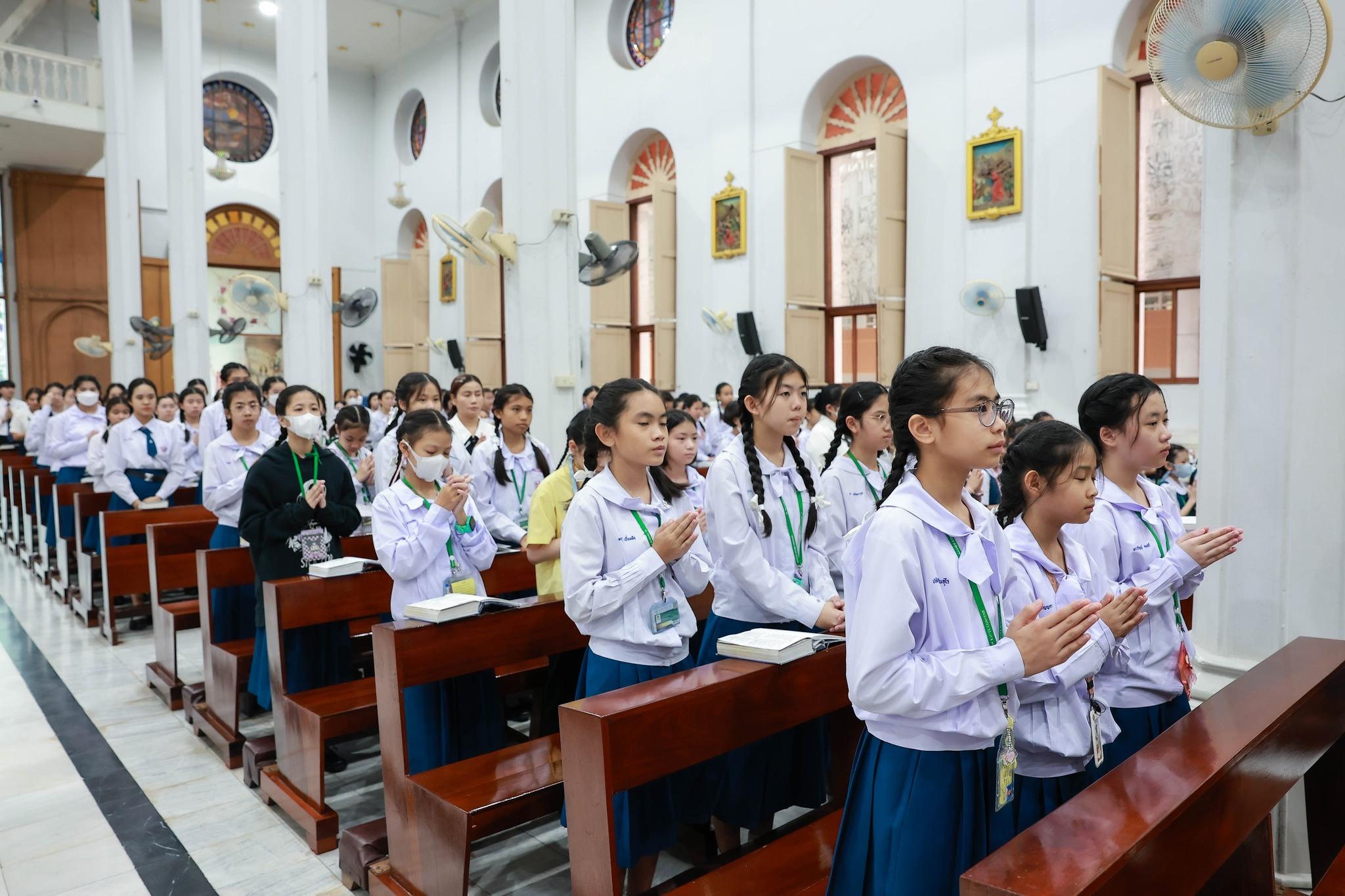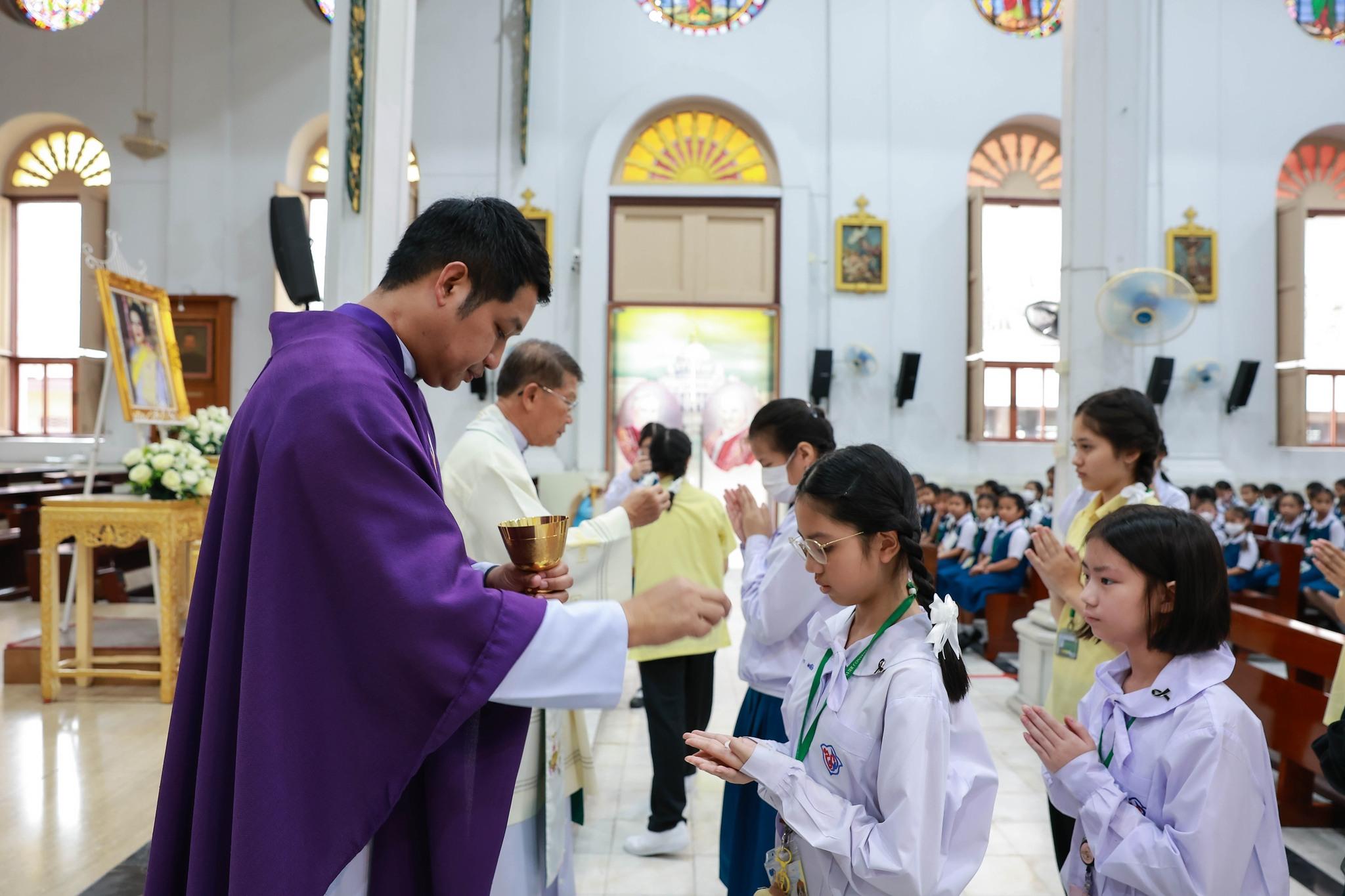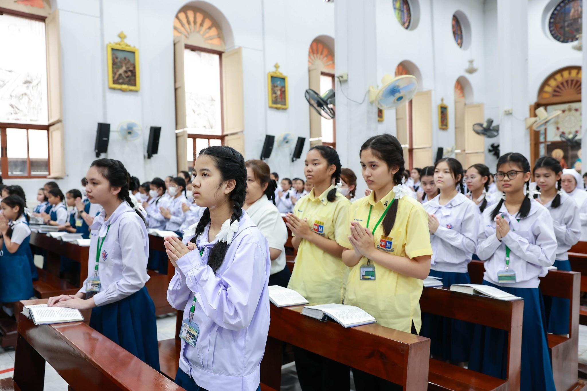 วันที่ 7 พฤศจิกายน 2568 ท่านอธิการิณีมารี หลุยส์ พรฤกษ์งาม พร้อมด้วยคณะเซอร์ คุณครูและนักเรียนคาทอลิก รวมทั้งตัวแทนคุณครูและนักเรียนทุกระดับชั้น ได้ร่วมพิธีบูชาขอบพระคุณ เพื่อน้อมรำลึกในพระมหากรุณาธิคุณ สมเด็จพระนางเจ้าสิริกิติ์ พระบรมราชินีนาถ พระบรมราชชนนีพันปีหลวง ในวาระสวรรคตครบ 15 วัน (ปัณรสมวาร) ณ วัดนักบุญฟรังซิสเซเวียร์ สามเสน โดยได้รับเกียรติจากคุณพ่อยอห์น บัปติสต์ เทวฤทธิ์ สุขเกษม ผู้ช่วยเจ้าอาวาสวัดนักบุญฟรังซิสเซเวียร์เป็นประธานในพิธี