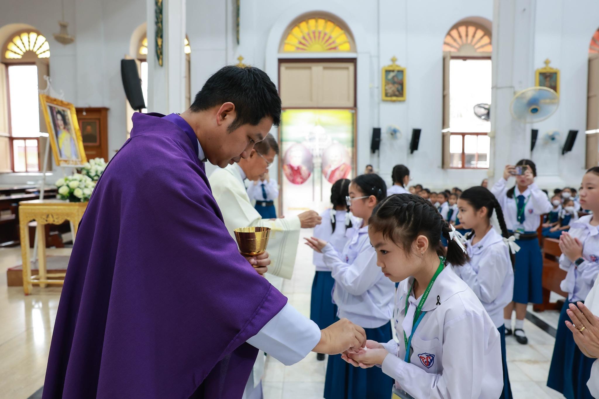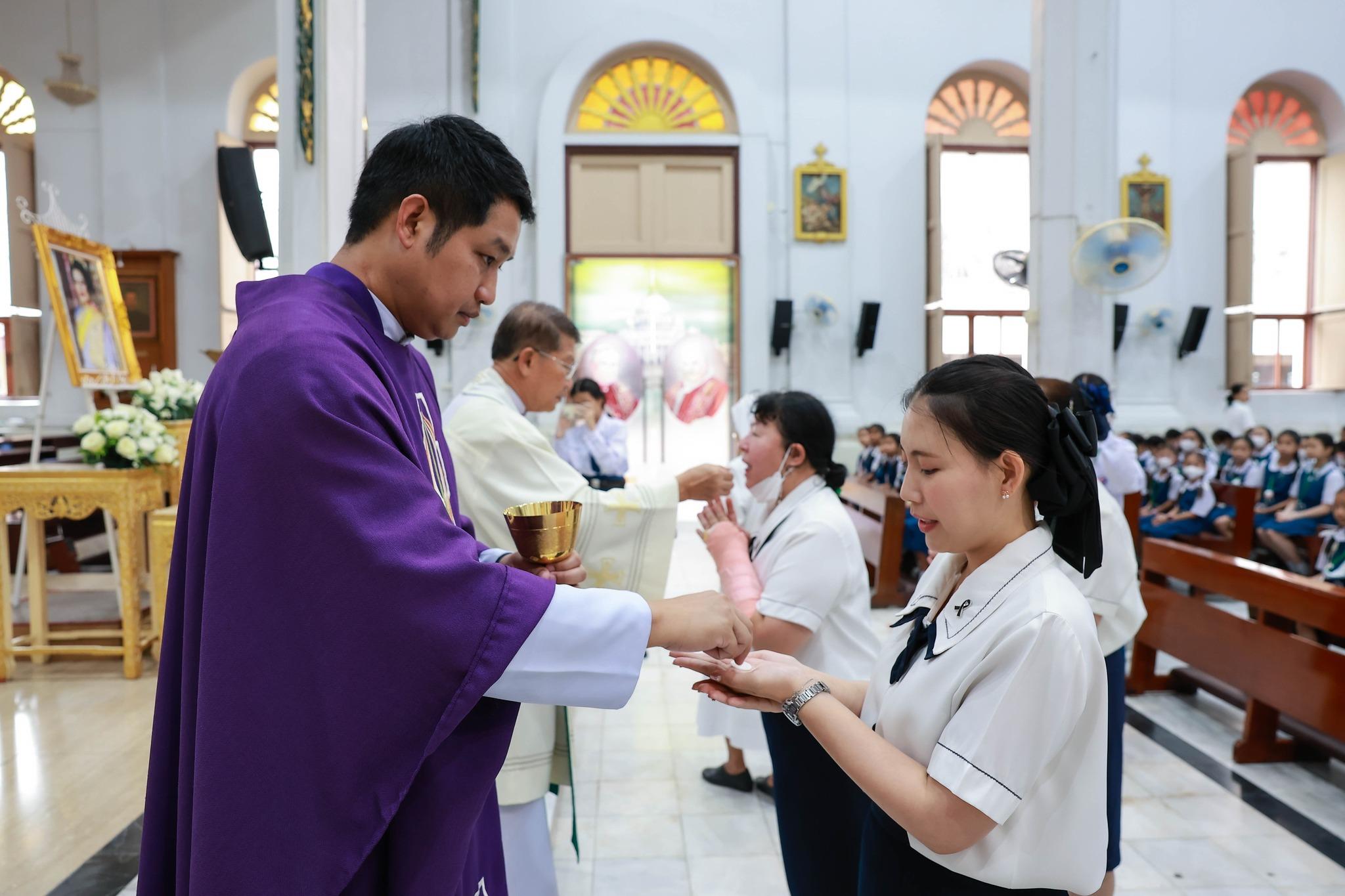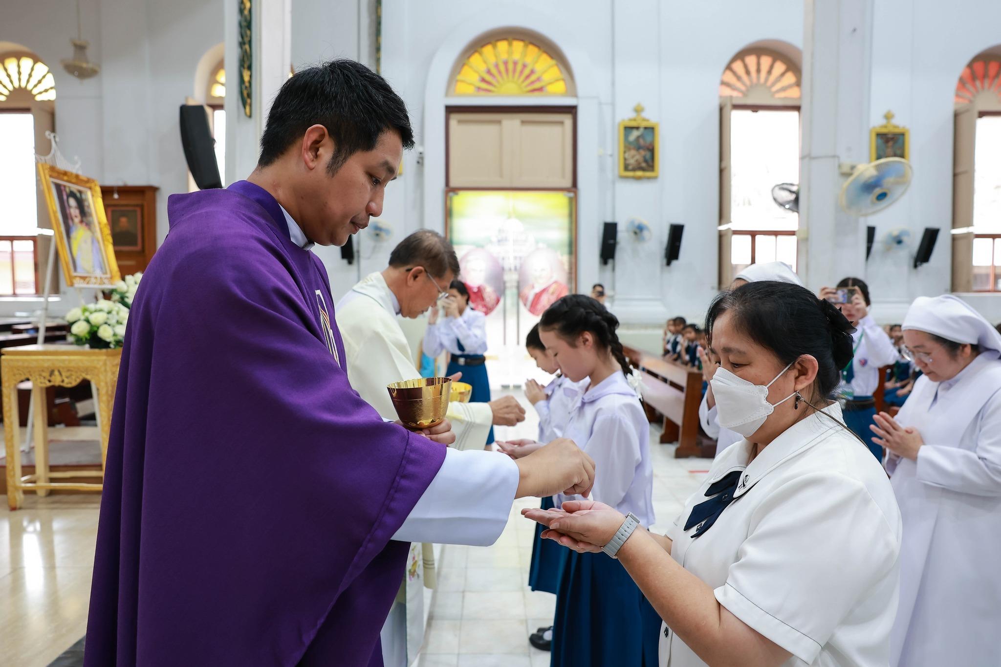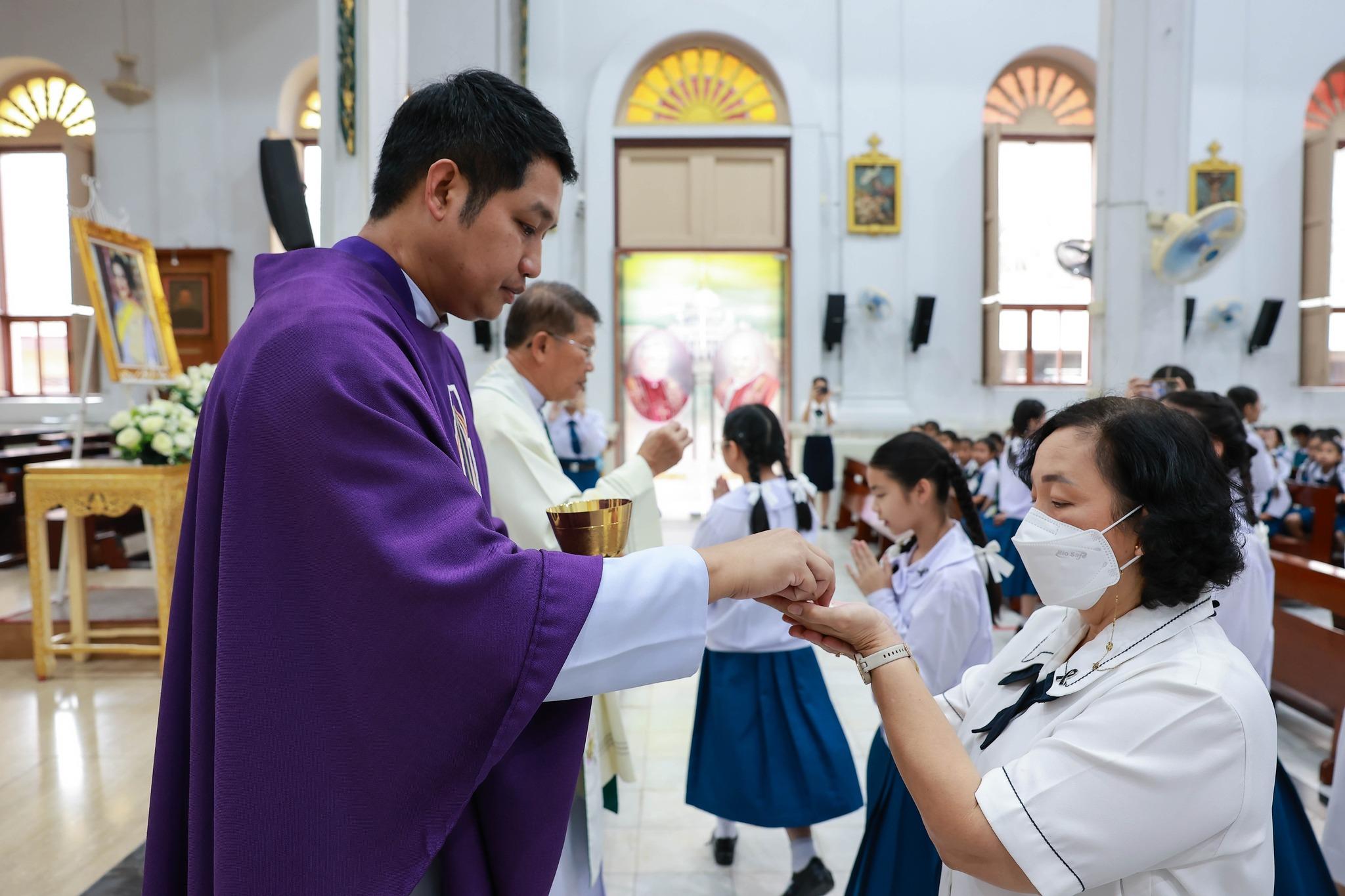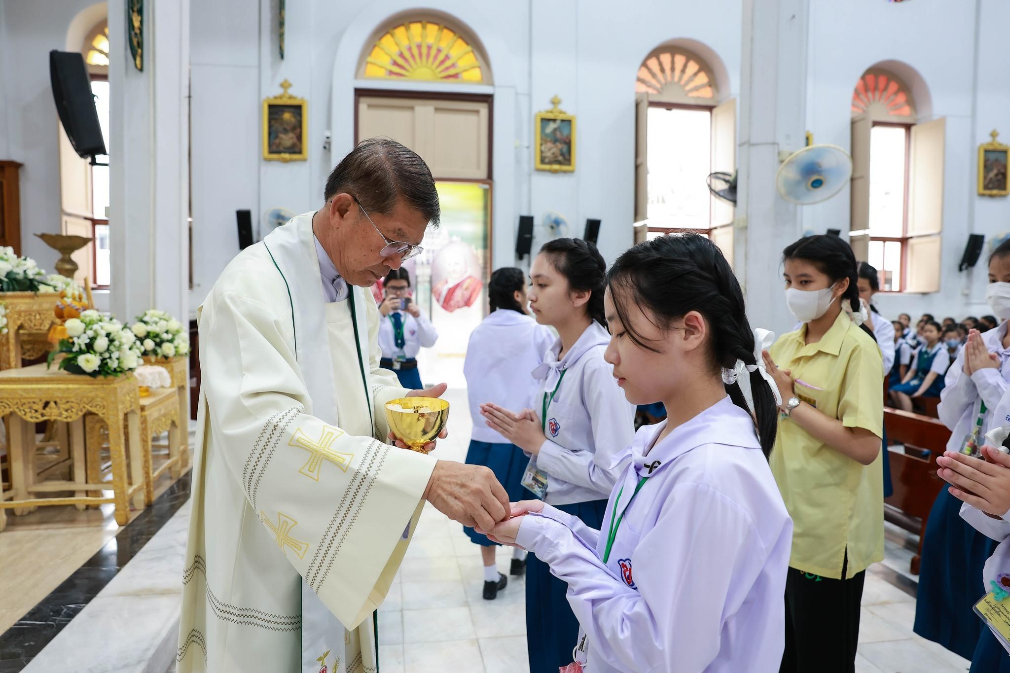 วันที่ 7 พฤศจิกายน 2568 ท่านอธิการิณีมารี หลุยส์ พรฤกษ์งาม พร้อมด้วยคณะเซอร์ คุณครูและนักเรียนคาทอลิก รวมทั้งตัวแทนคุณครูและนักเรียนทุกระดับชั้น ได้ร่วมพิธีบูชาขอบพระคุณ เพื่อน้อมรำลึกในพระมหากรุณาธิคุณ สมเด็จพระนางเจ้าสิริกิติ์ พระบรมราชินีนาถ พระบรมราชชนนีพันปีหลวง ในวาระสวรรคตครบ 15 วัน (ปัณรสมวาร) ณ วัดนักบุญฟรังซิสเซเวียร์ สามเสน โดยได้รับเกียรติจากคุณพ่อยอห์น บัปติสต์ เทวฤทธิ์ สุขเกษม ผู้ช่วยเจ้าอาวาสวัดนักบุญฟรังซิสเซเวียร์เป็นประธานในพิธี