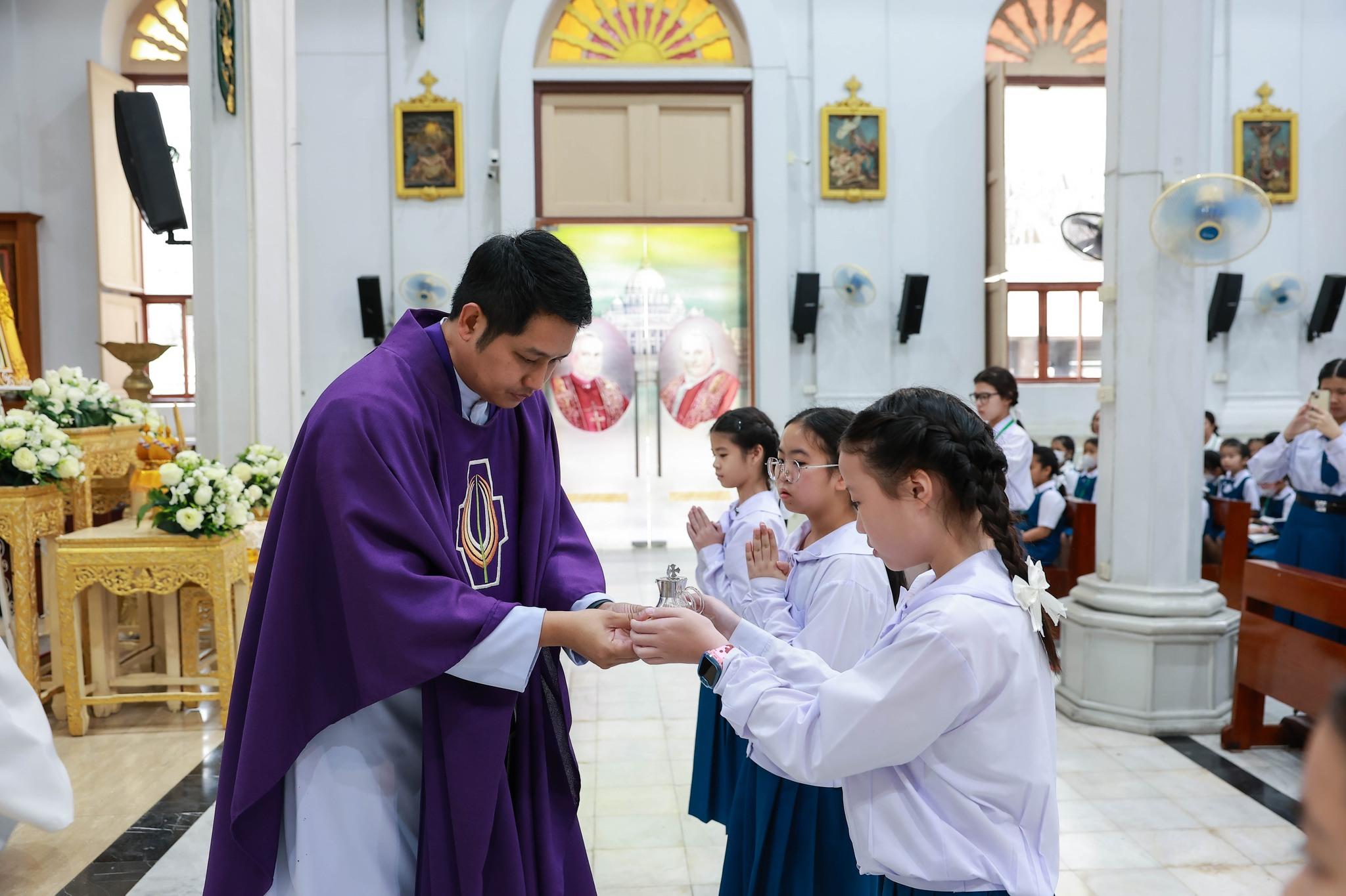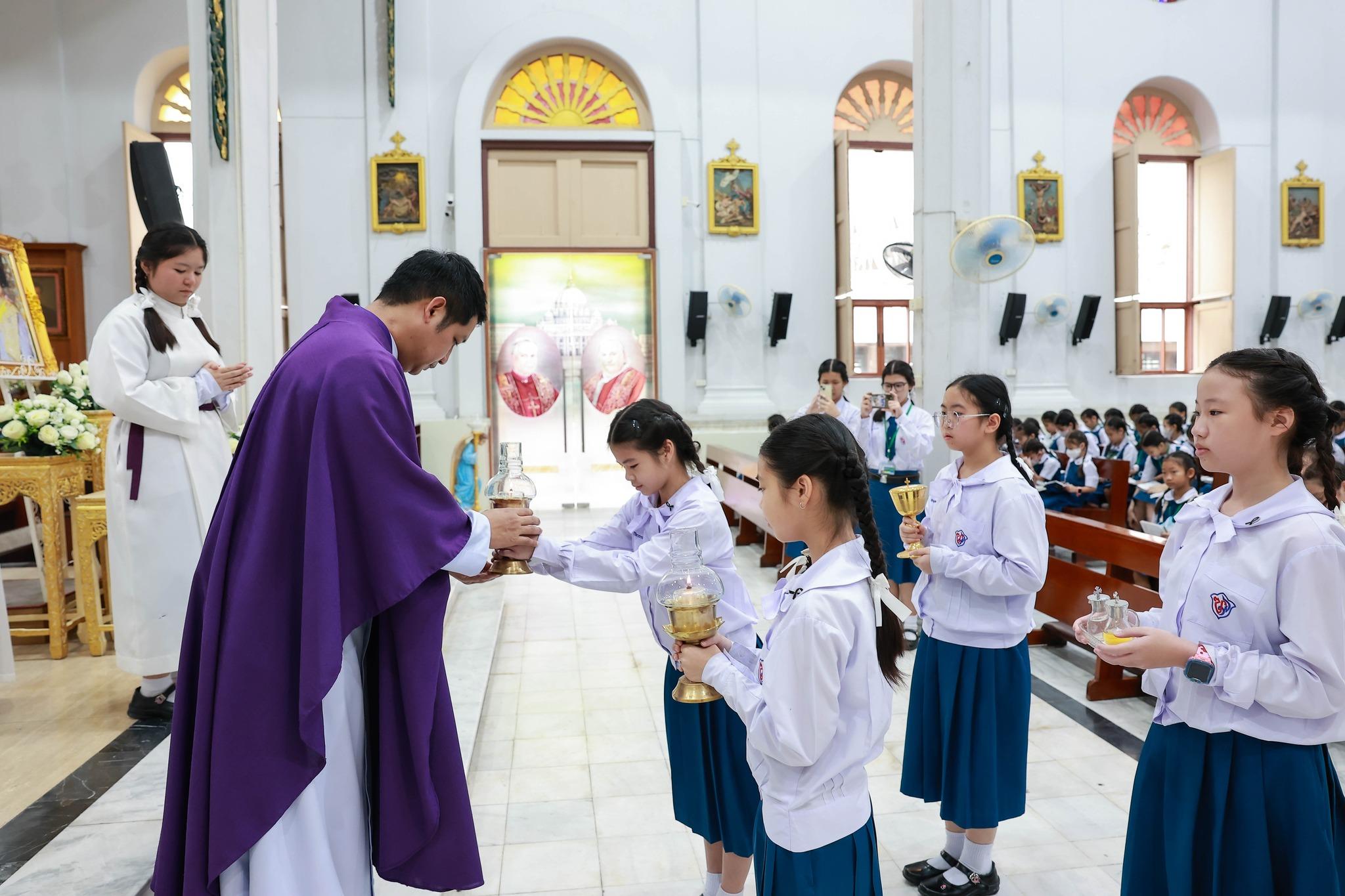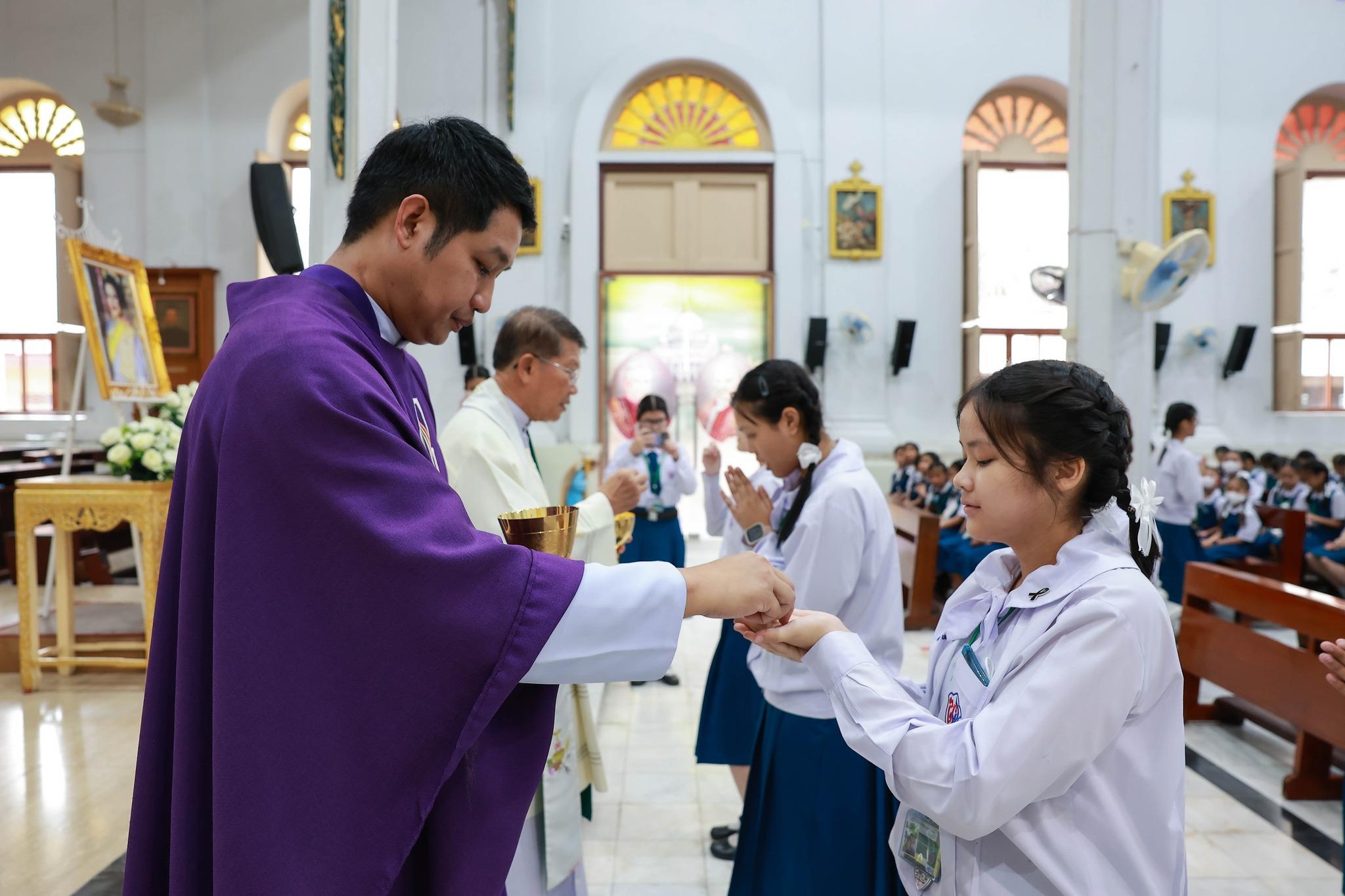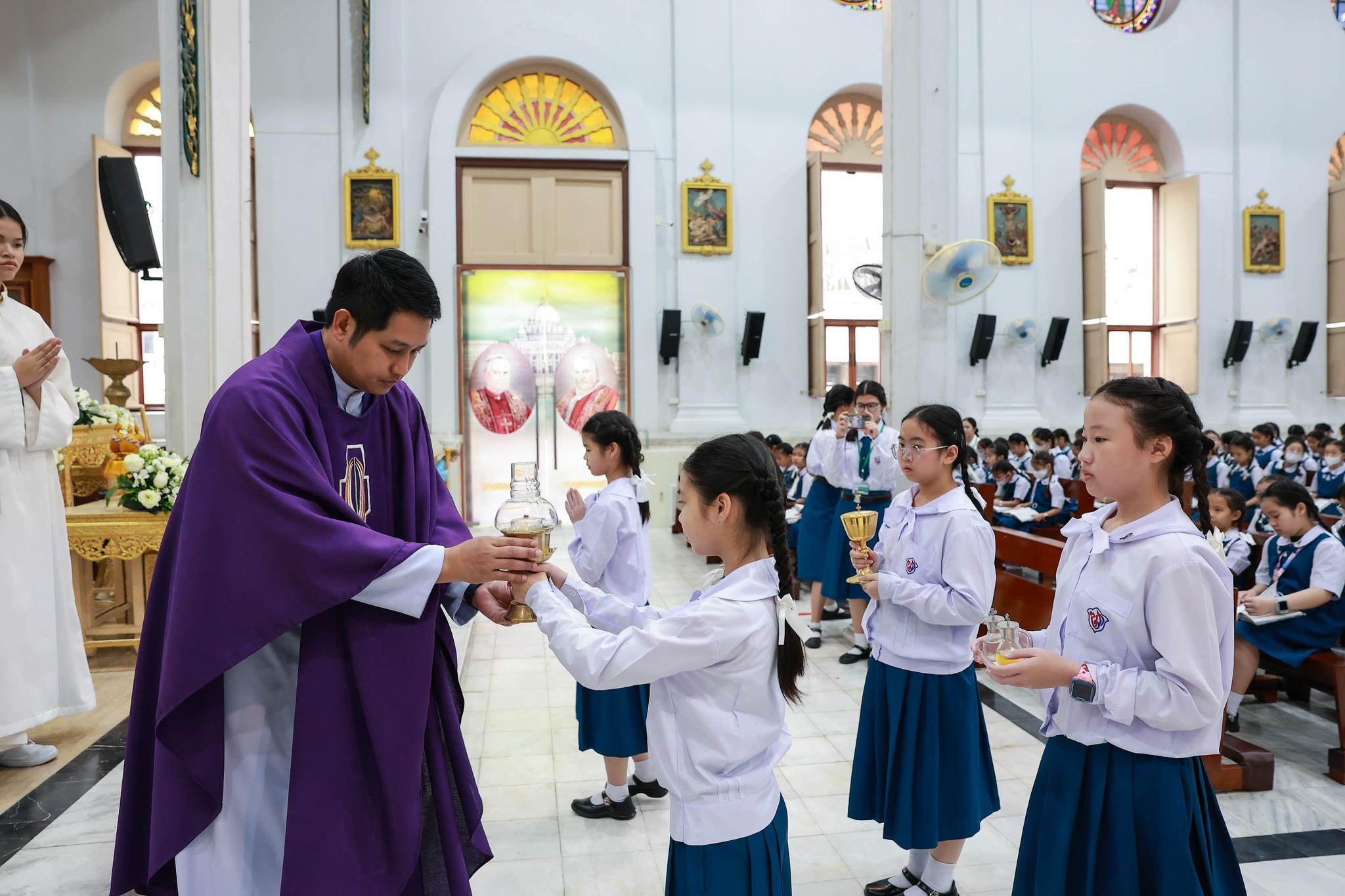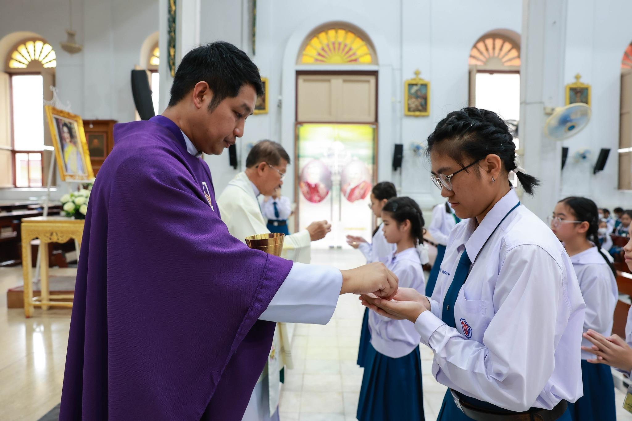 วันที่ 7 พฤศจิกายน 2568 ท่านอธิการิณีมารี หลุยส์ พรฤกษ์งาม พร้อมด้วยคณะเซอร์ คุณครูและนักเรียนคาทอลิก รวมทั้งตัวแทนคุณครูและนักเรียนทุกระดับชั้น ได้ร่วมพิธีบูชาขอบพระคุณ เพื่อน้อมรำลึกในพระมหากรุณาธิคุณ สมเด็จพระนางเจ้าสิริกิติ์ พระบรมราชินีนาถ พระบรมราชชนนีพันปีหลวง ในวาระสวรรคตครบ 15 วัน (ปัณรสมวาร) ณ วัดนักบุญฟรังซิสเซเวียร์ สามเสน โดยได้รับเกียรติจากคุณพ่อยอห์น บัปติสต์ เทวฤทธิ์ สุขเกษม ผู้ช่วยเจ้าอาวาสวัดนักบุญฟรังซิสเซเวียร์เป็นประธานในพิธี