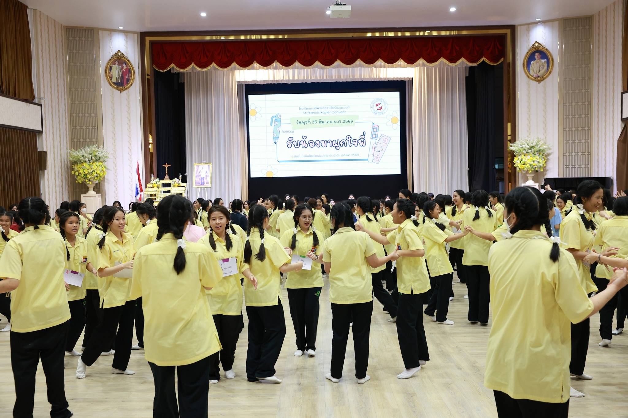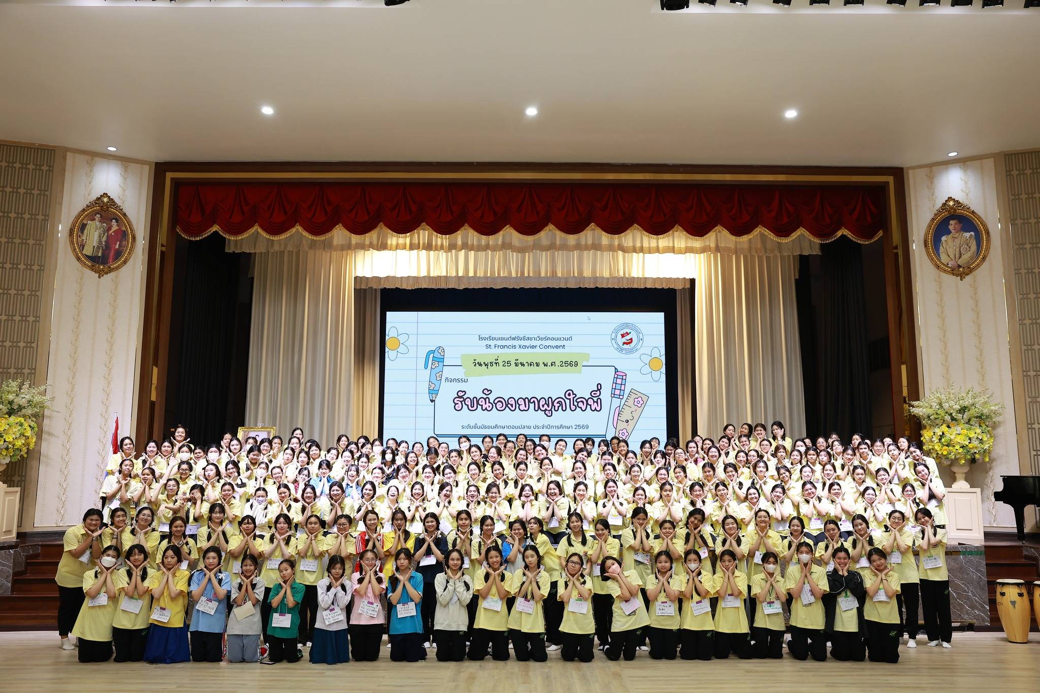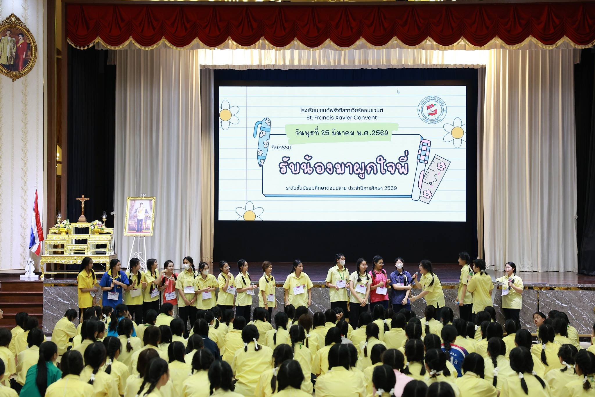 ฝ่ายกิจการนักเรียนร่วมกับฝ่ายวิชาการจัดกิจกรรม “รับน้องมาผูกใจพี่” ขึ้นเพื่อเป็นการปฐมนิเทศนักเรียนชั้นมัธยมศึกษาปีที่ 4 และสร้างความสัมพันธ์ที่ดีระหว่างเพื่อน รุ่นพี่-รุ่นน้องในระดับชั้นมัธยมศึกษาปีที่ 4 – 6 จัดขึ้น ณ หอประชุมโรงเรียน เมื่อวันที่ 25 มีนาคม 2569 เริ่มต้นกิจกรรมด้วยวจนพิธีกรรม และการให้โอวาทจากท่านอธิการิณี เซอร์มารี หลุยส์ พรฤกษ์งาม และเซอร์ชอง บัปติส เดอ ลาซาล ว่องไว จากนั้นก็ได้รับฟังการปฐมนิเทศจากฝ่ายรักษาระเบียบวินัย และฝ่ายวิชาการ ต่อด้วยกิจกรรมจากพี่ๆ ม.6 ที่หากิจกรรมมาทำร่วมกับน้องๆ ม.4 และ ม.5 ปิดท้ายด้วยการรับน้อง ม.4 เข้าสู่ชั้นมัธยมศึกษาตอนปลาย โดยพี่ๆ ชั้น ม.5 และ ม.6 กิจกรรมวันนี้เป็นเพียงกิจกรรมเริ่มต้นในการสร้างความสัมพันธ์และก่อเกิดความผูกพันระหว่างรุ่นพี่-รุ่นน้องเซนต์ฟรังฯ ด้วยกัน และจะเป็นจุดเริ่มต้นของความสนิทสนม ความช่วยเหลือเกื้อกูลกันนับจากนี้เป็นต้นไป