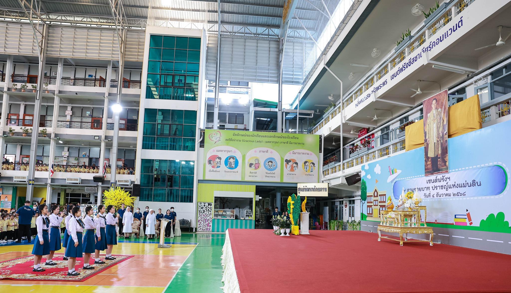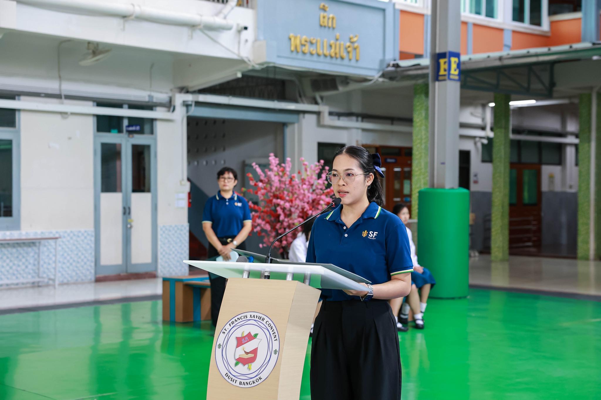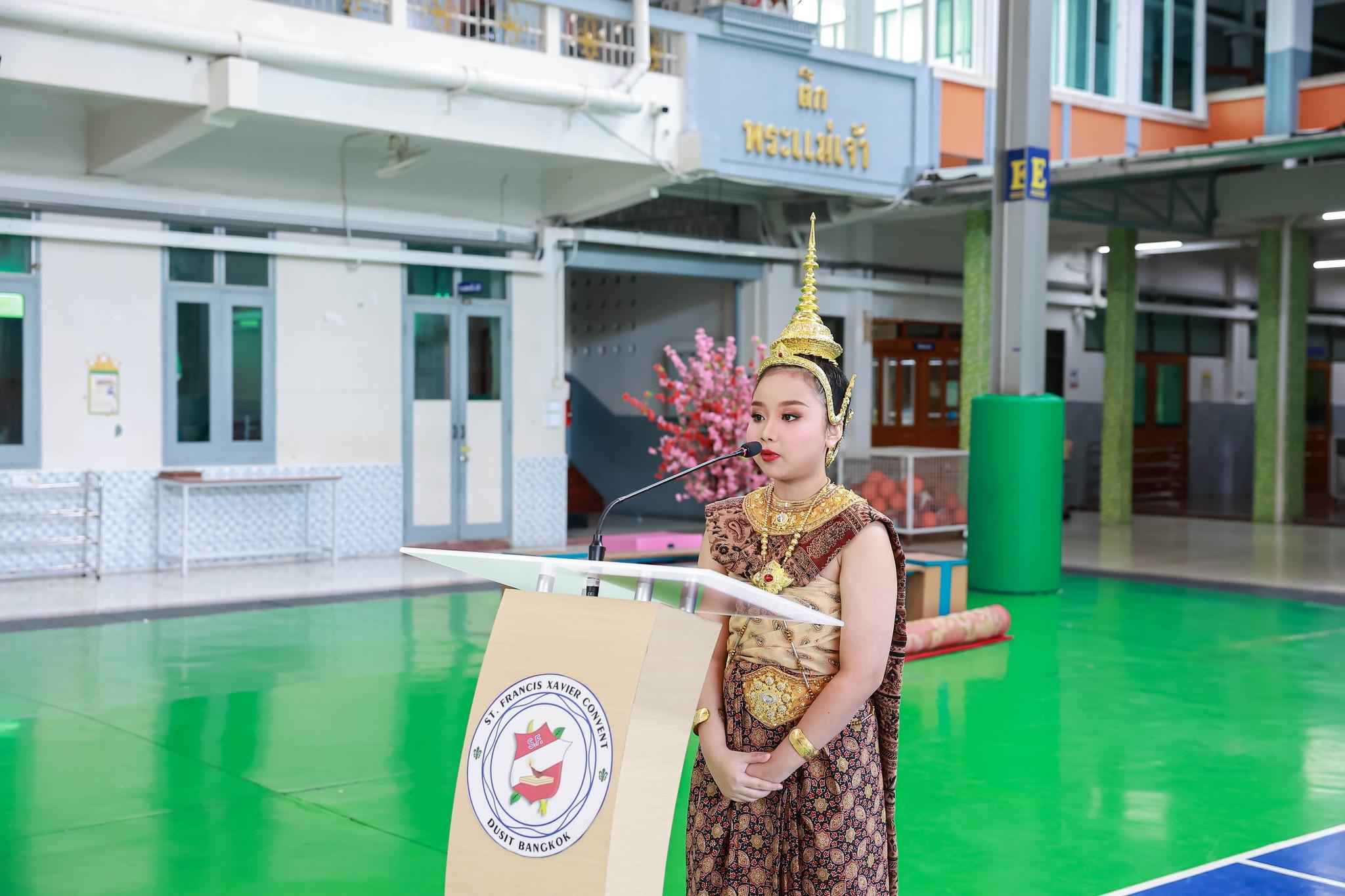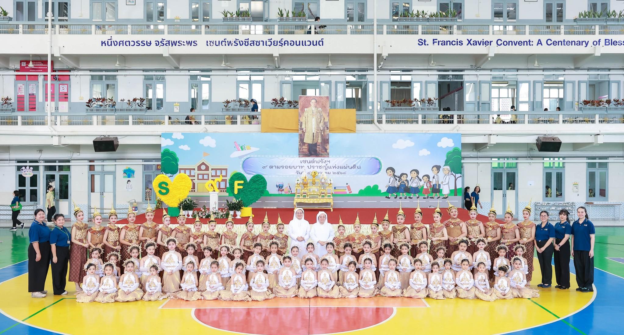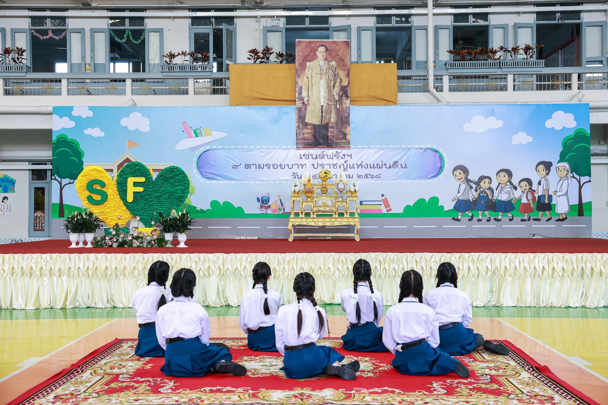 กิจกรรมสหวิทยาการศาสตร์ศิลป์แผ่นดินไทย “เซนต์ฟรังฯ ๙ ตามรอยบาท ปราชญ์แห่งแผ่นดิน” วันที่ 4 ธันวาคม 2568 ฝ่ายกิจการนักเรียนจัดพิธีเทิดพระเกียรติพิธีเทิดพระเกียรติพระบาทสมเด็จพระบรมชนกาธิเบศร มหาภูมิพลอดุลยเดชมหาราช บรมนาถบพิตร โดยมีตัวแทนนักเรียนชั้นมัธยมศึกษาปีที่ 5 กล่าวบทอาศิรวาทเทิดพระเกียรติพระองค์ท่าน จากนั้นฝ่ายวิชาการจัดให้มีพิธีเปิดกิจกรรมสหวิทยาการศาสตร์ศิลป์แผ่นดินไทย “เซนต์ฟรังฯ ๙ ตามรอยบาท ปราชญ์แห่งแผ่นดิน” โดยมีท่านอธิการิณีมารี หลุยส์ พรฤกษ์งาม เป็นประธานเปิดงาน และมีเซอร์ชอง บัปติส เดอ ลาซาล แคทเธอริน ว่องไว และหัวหน้ากลุ่มสาระการเรียนรู้ร่วมในพิธีเปิดครั้งนี้ รวมทั้งมีการแสดงเปิดงานจากนักเรียนกิจกรรมนาฏศิลป์ ในชื่อชุด “ดวงใจภักดี เทิดพระบารมี แผ่นดินี้เพื่อพ่อ” ที่แสดงให้รับชมอย่างสง่างาม กิจกรรมวันนี้มีพี่ๆ ประถมศึกษาปีที่ 6 เป็นผู้พาน้องเดินเข้าฐานกิจรรมและเป็นผู้ช่วยดำเนินการในแต่ละฐานทั้ง 5 ฐานกิจกรรมด้วย นับเป็นการฝึกทักษะกระบวนการทำงาน ความรับผิดชอบ การตัดสินใจ การเป็นผู้นำผู้ตามที่ดี การแก้ปัญหาเฉพาะหน้าให้แก่เด็กๆ ชั้นประถมศึกษาปีที่ 6 ได้เป็นอย่างดี และเด็กๆ ก็ทำหน้าที่ของตนเองได้อย่างดีเยี่ยม ส่วนนักเรียนระดับชั้นมัธยมศึกษาปีที่ 1 – 3 อดใจรออีกสักหน่อย พวกหนูจะได้ไปเรียนรู้นอกสถานที่ ณ ศูนย์ฝึกโรงเรียนจิตอาสา 904 บางเขน ในช่วงเดือนมกราคม 2569 นะคะ