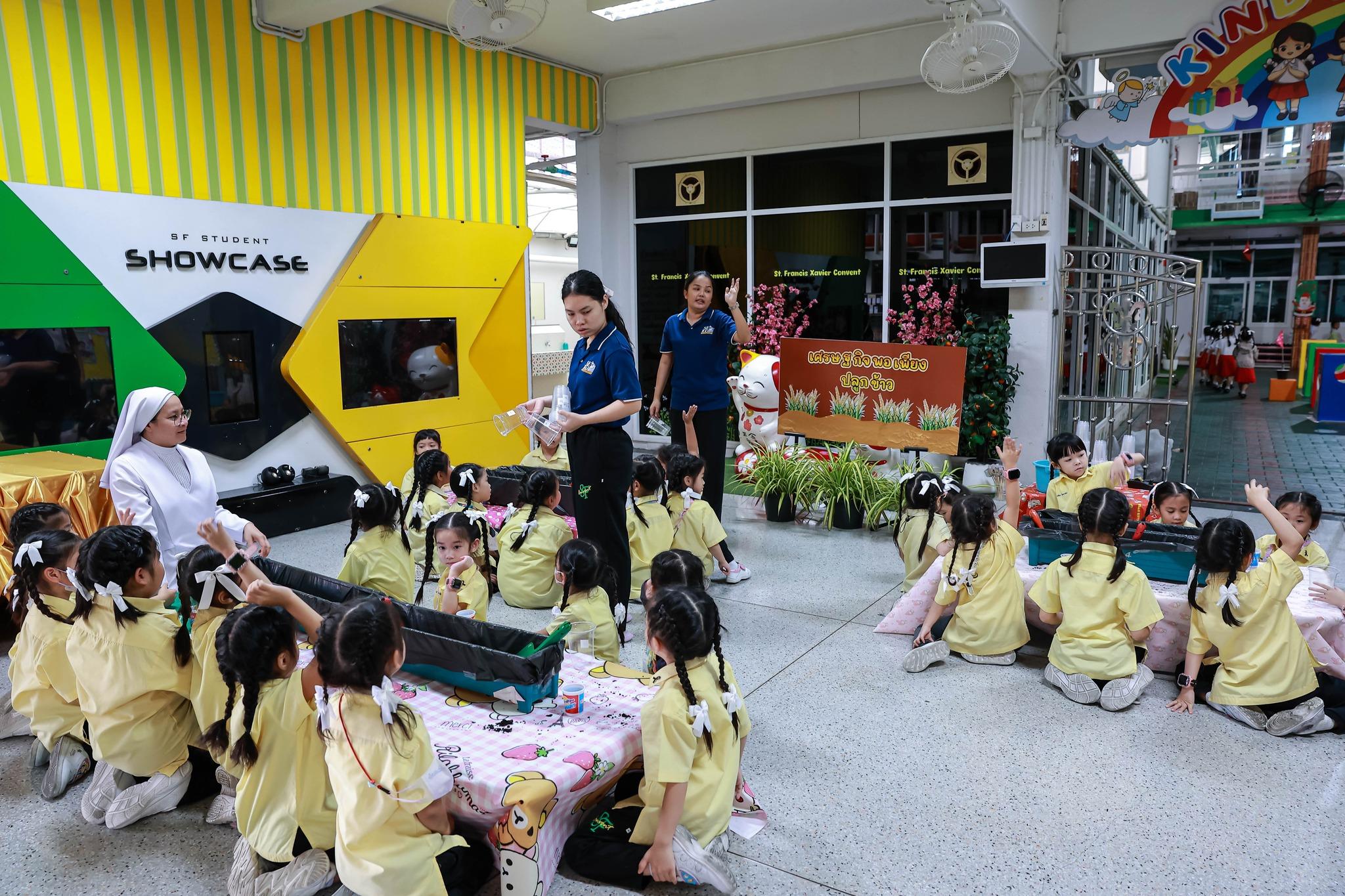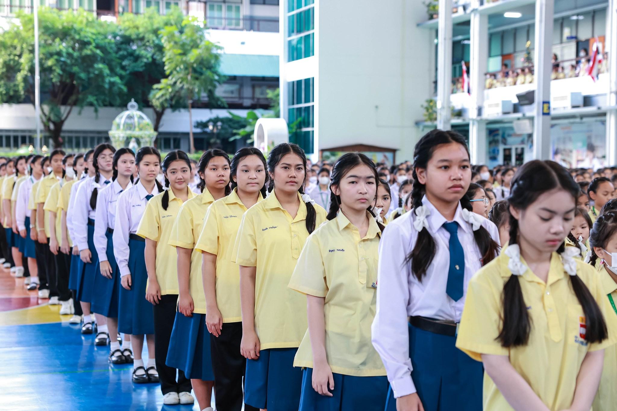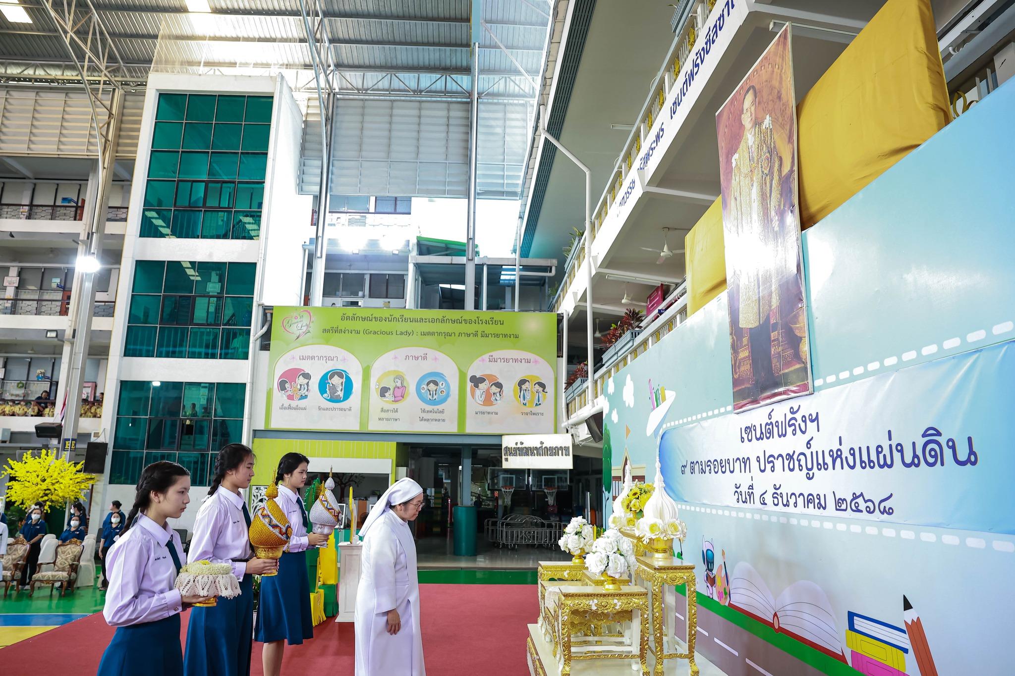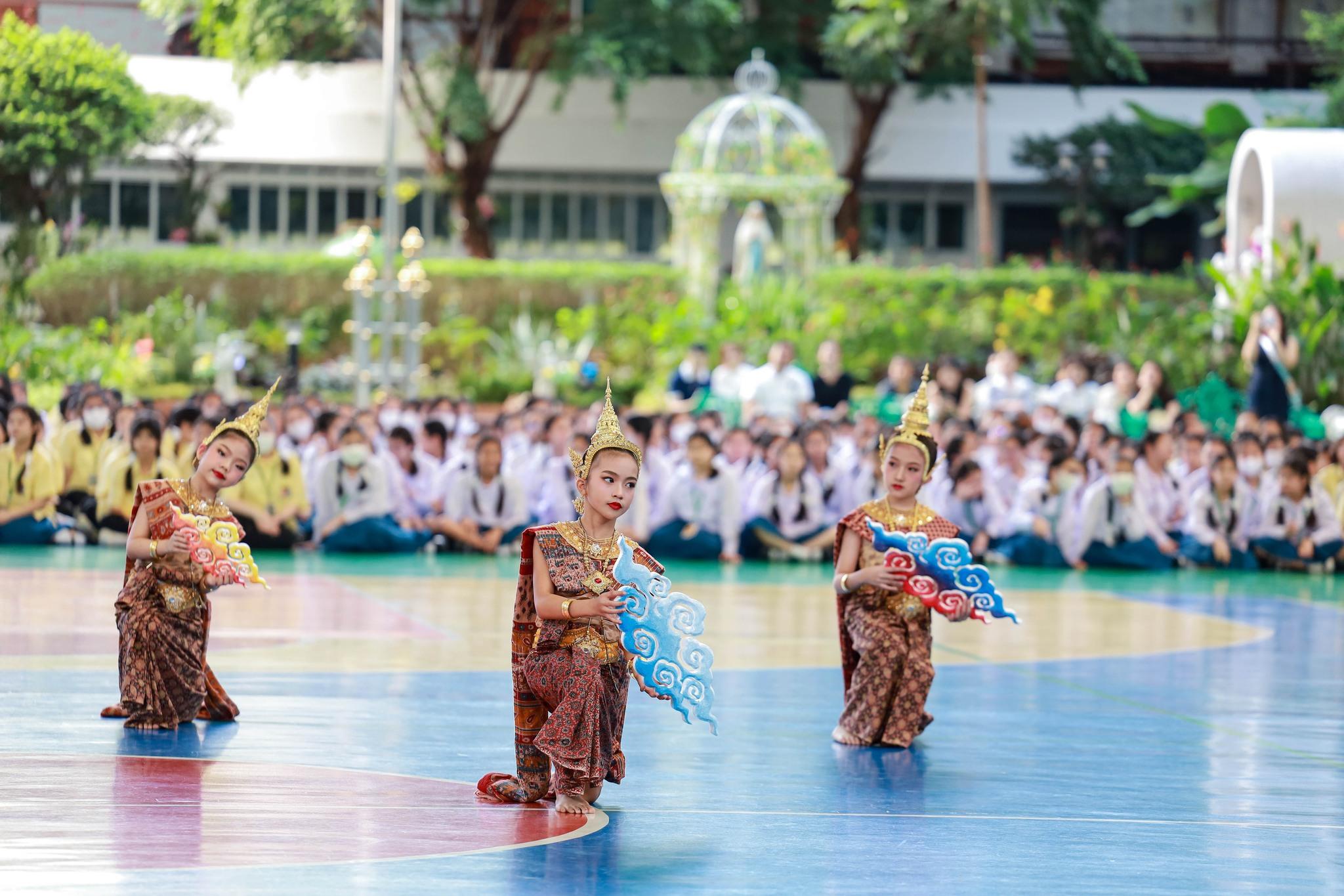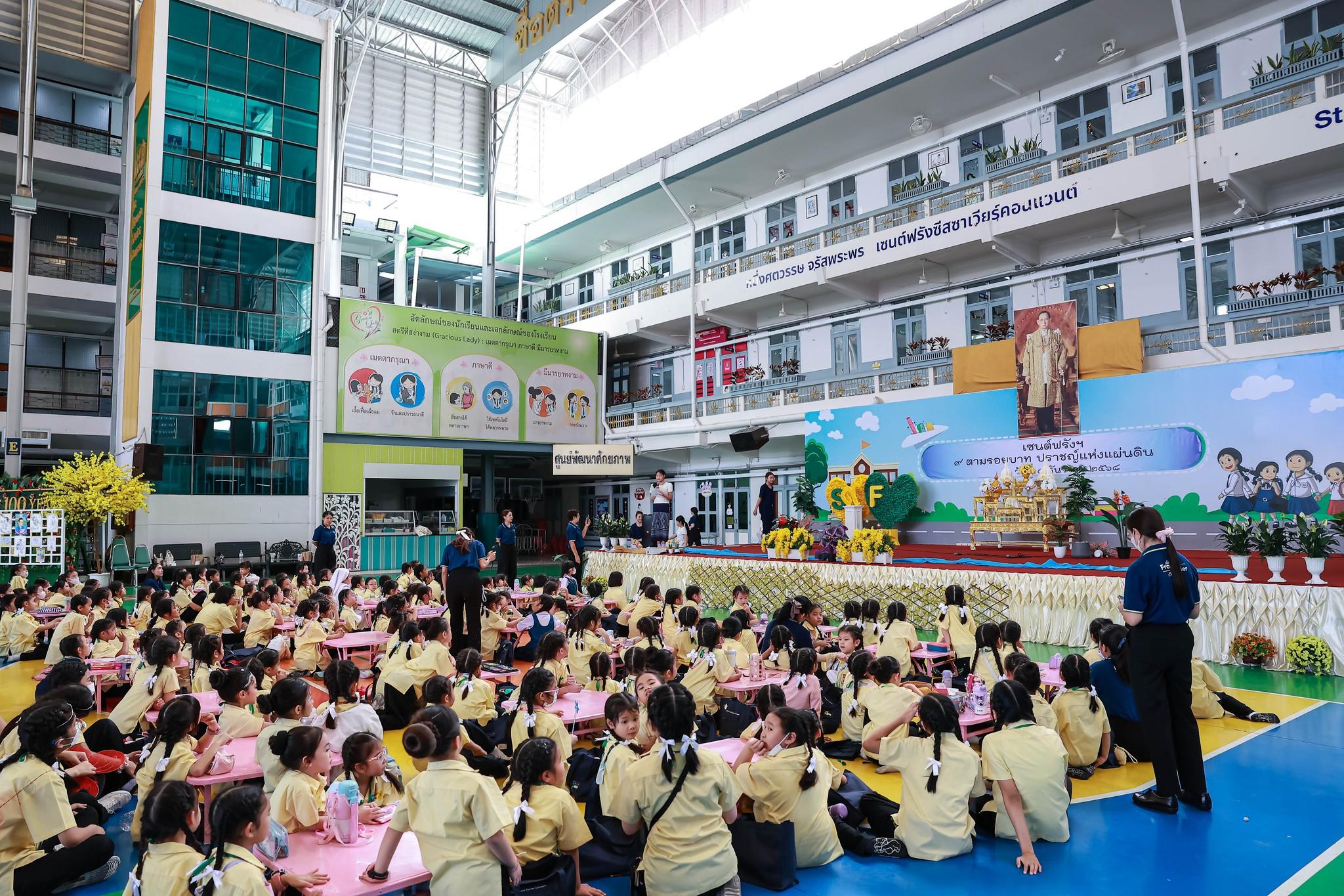 กิจกรรมสหวิทยาการศาสตร์ศิลป์แผ่นดินไทย “เซนต์ฟรังฯ ๙ ตามรอยบาท ปราชญ์แห่งแผ่นดิน” วันที่ 4 ธันวาคม 2568 ฝ่ายกิจการนักเรียนจัดพิธีเทิดพระเกียรติพิธีเทิดพระเกียรติพระบาทสมเด็จพระบรมชนกาธิเบศร มหาภูมิพลอดุลยเดชมหาราช บรมนาถบพิตร โดยมีตัวแทนนักเรียนชั้นมัธยมศึกษาปีที่ 5 กล่าวบทอาศิรวาทเทิดพระเกียรติพระองค์ท่าน จากนั้นฝ่ายวิชาการจัดให้มีพิธีเปิดกิจกรรมสหวิทยาการศาสตร์ศิลป์แผ่นดินไทย “เซนต์ฟรังฯ ๙ ตามรอยบาท ปราชญ์แห่งแผ่นดิน” โดยมีท่านอธิการิณีมารี หลุยส์ พรฤกษ์งาม เป็นประธานเปิดงาน และมีเซอร์ชอง บัปติส เดอ ลาซาล แคทเธอริน ว่องไว และหัวหน้ากลุ่มสาระการเรียนรู้ร่วมในพิธีเปิดครั้งนี้ รวมทั้งมีการแสดงเปิดงานจากนักเรียนกิจกรรมนาฏศิลป์ ในชื่อชุด “ดวงใจภักดี เทิดพระบารมี แผ่นดินี้เพื่อพ่อ” ที่แสดงให้รับชมอย่างสง่างาม กิจกรรมวันนี้มีพี่ๆ ประถมศึกษาปีที่ 6 เป็นผู้พาน้องเดินเข้าฐานกิจรรมและเป็นผู้ช่วยดำเนินการในแต่ละฐานทั้ง 5 ฐานกิจกรรมด้วย นับเป็นการฝึกทักษะกระบวนการทำงาน ความรับผิดชอบ การตัดสินใจ การเป็นผู้นำผู้ตามที่ดี การแก้ปัญหาเฉพาะหน้าให้แก่เด็กๆ ชั้นประถมศึกษาปีที่ 6 ได้เป็นอย่างดี และเด็กๆ ก็ทำหน้าที่ของตนเองได้อย่างดีเยี่ยม ส่วนนักเรียนระดับชั้นมัธยมศึกษาปีที่ 1 – 3 อดใจรออีกสักหน่อย พวกหนูจะได้ไปเรียนรู้นอกสถานที่ ณ ศูนย์ฝึกโรงเรียนจิตอาสา 904 บางเขน ในช่วงเดือนมกราคม 2569 นะคะ