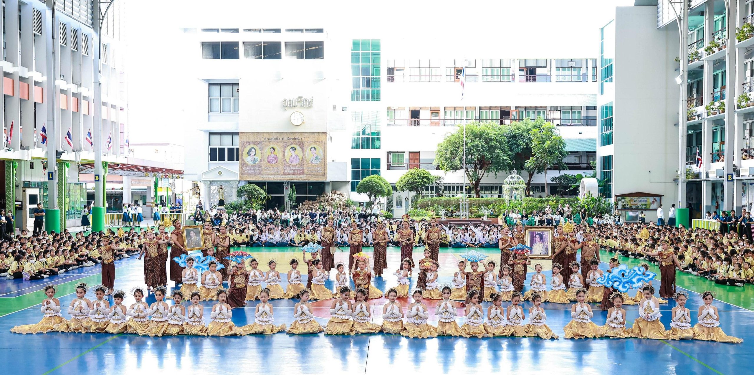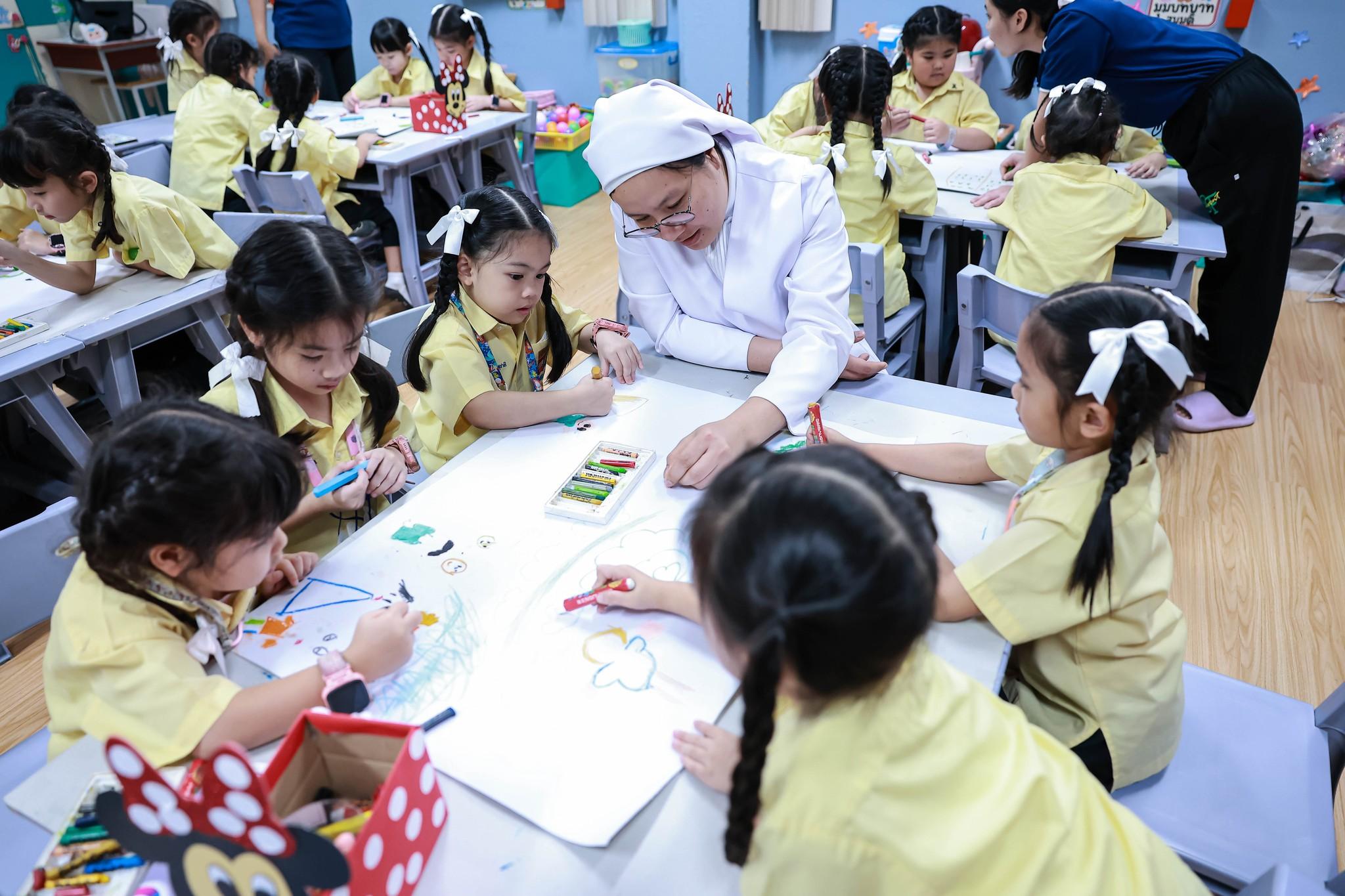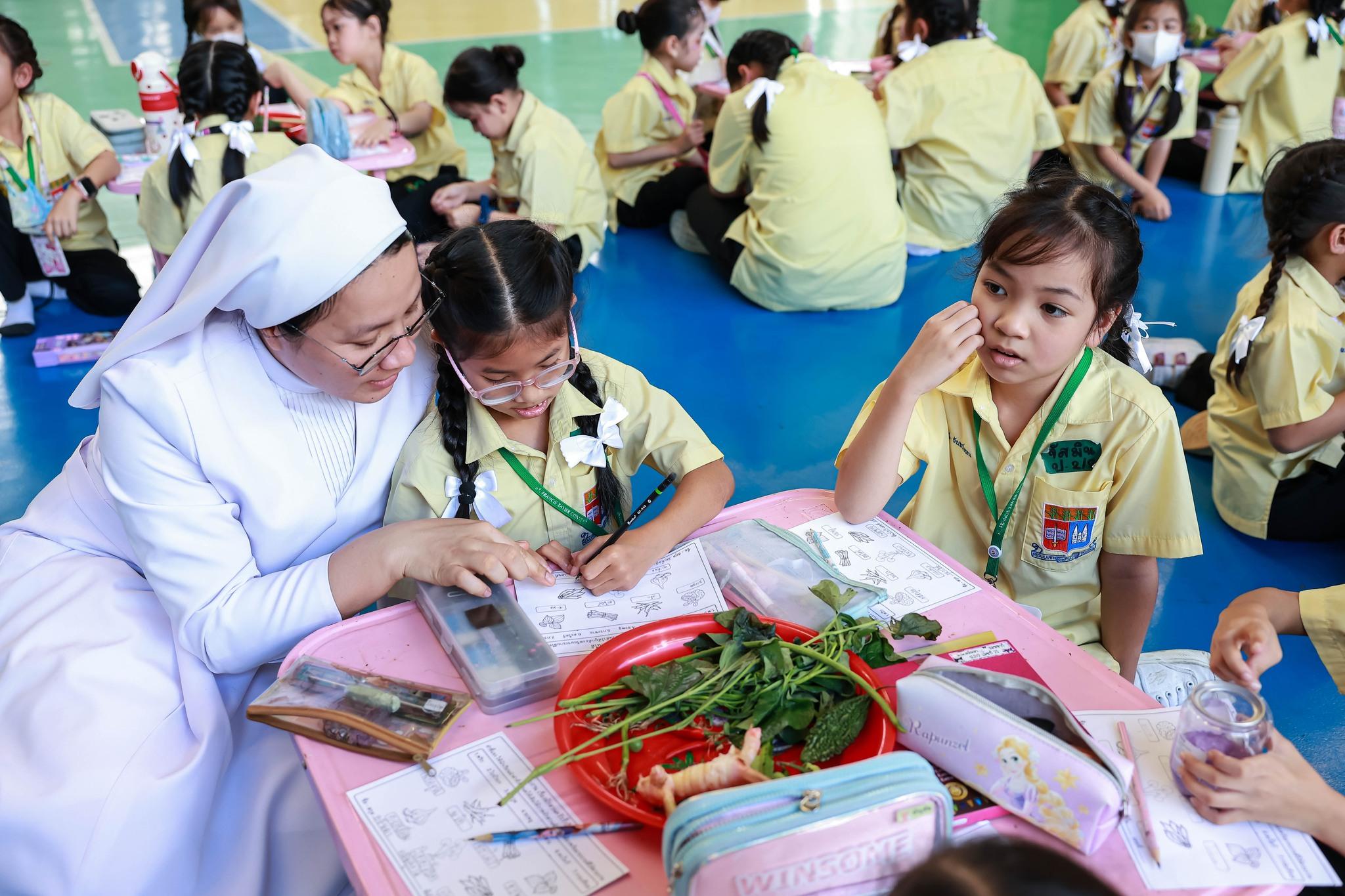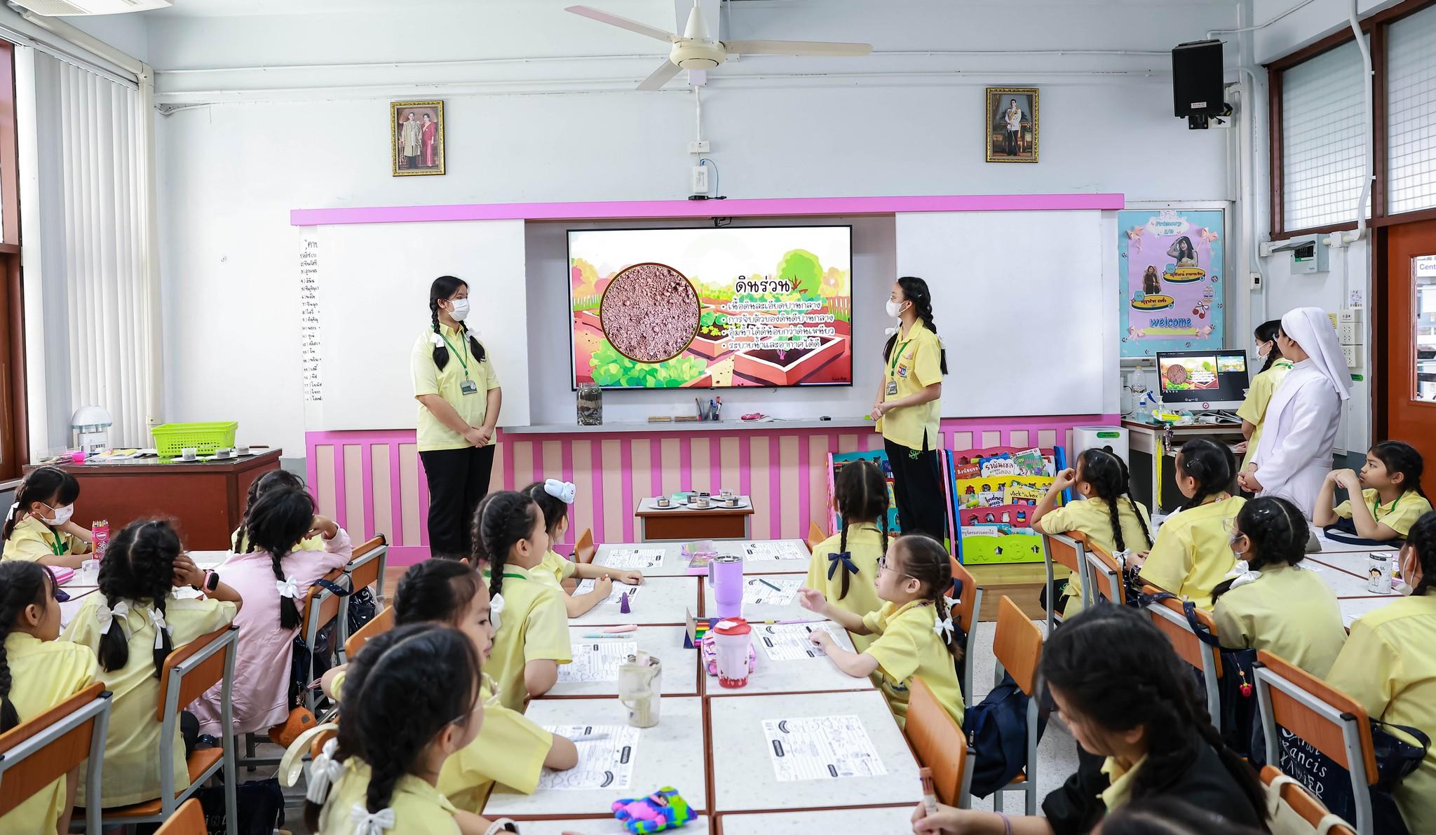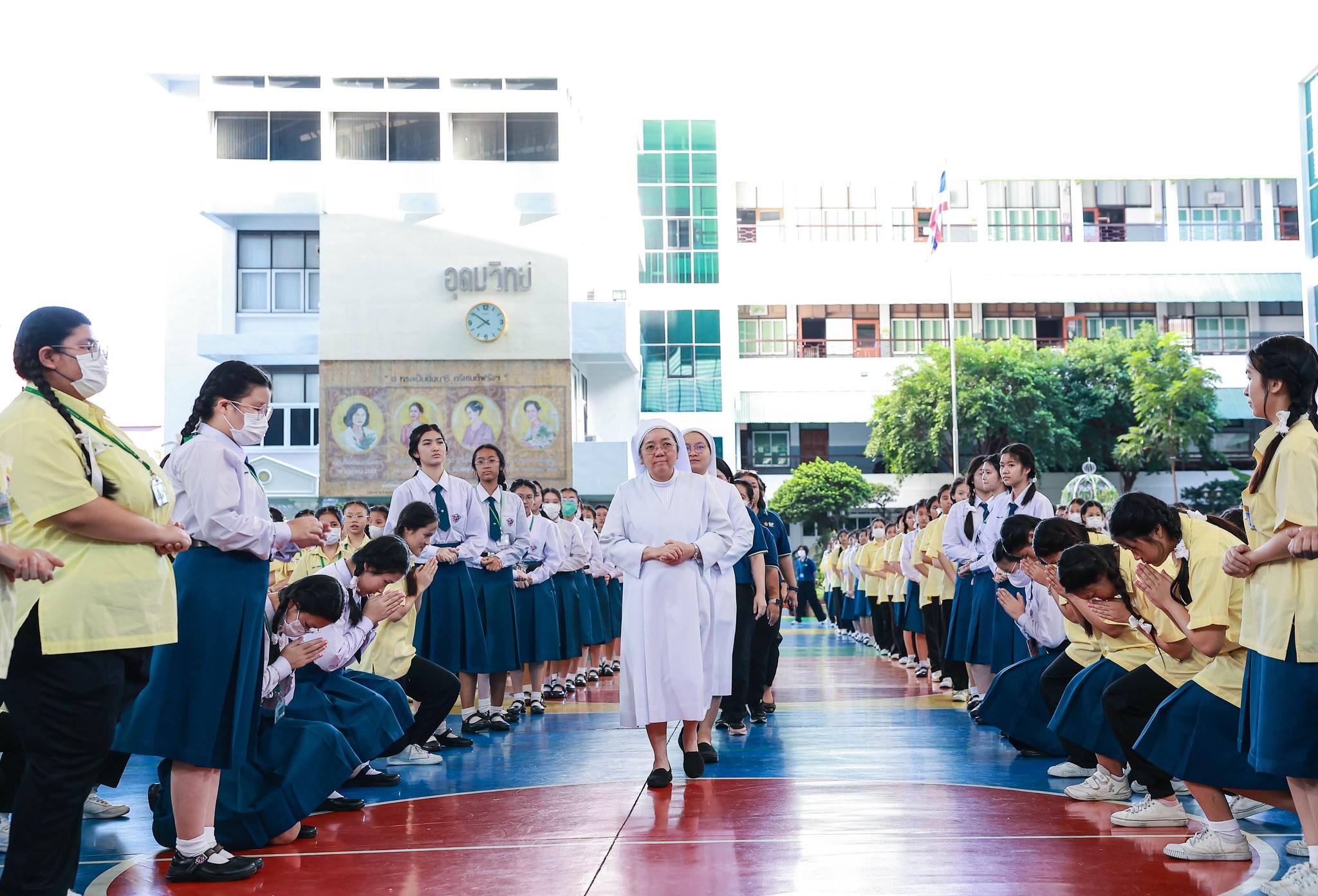 กิจกรรมสหวิทยาการศาสตร์ศิลป์แผ่นดินไทย “เซนต์ฟรังฯ ๙ ตามรอยบาท ปราชญ์แห่งแผ่นดิน” วันที่ 4 ธันวาคม 2568 ฝ่ายกิจการนักเรียนจัดพิธีเทิดพระเกียรติพิธีเทิดพระเกียรติพระบาทสมเด็จพระบรมชนกาธิเบศร มหาภูมิพลอดุลยเดชมหาราช บรมนาถบพิตร โดยมีตัวแทนนักเรียนชั้นมัธยมศึกษาปีที่ 5 กล่าวบทอาศิรวาทเทิดพระเกียรติพระองค์ท่าน จากนั้นฝ่ายวิชาการจัดให้มีพิธีเปิดกิจกรรมสหวิทยาการศาสตร์ศิลป์แผ่นดินไทย “เซนต์ฟรังฯ ๙ ตามรอยบาท ปราชญ์แห่งแผ่นดิน” โดยมีท่านอธิการิณีมารี หลุยส์ พรฤกษ์งาม เป็นประธานเปิดงาน และมีเซอร์ชอง บัปติส เดอ ลาซาล แคทเธอริน ว่องไว และหัวหน้ากลุ่มสาระการเรียนรู้ร่วมในพิธีเปิดครั้งนี้ รวมทั้งมีการแสดงเปิดงานจากนักเรียนกิจกรรมนาฏศิลป์ ในชื่อชุด “ดวงใจภักดี เทิดพระบารมี แผ่นดินี้เพื่อพ่อ” ที่แสดงให้รับชมอย่างสง่างาม กิจกรรมวันนี้มีพี่ๆ ประถมศึกษาปีที่ 6 เป็นผู้พาน้องเดินเข้าฐานกิจรรมและเป็นผู้ช่วยดำเนินการในแต่ละฐานทั้ง 5 ฐานกิจกรรมด้วย นับเป็นการฝึกทักษะกระบวนการทำงาน ความรับผิดชอบ การตัดสินใจ การเป็นผู้นำผู้ตามที่ดี การแก้ปัญหาเฉพาะหน้าให้แก่เด็กๆ ชั้นประถมศึกษาปีที่ 6 ได้เป็นอย่างดี และเด็กๆ ก็ทำหน้าที่ของตนเองได้อย่างดีเยี่ยม ส่วนนักเรียนระดับชั้นมัธยมศึกษาปีที่ 1 – 3 อดใจรออีกสักหน่อย พวกหนูจะได้ไปเรียนรู้นอกสถานที่ ณ ศูนย์ฝึกโรงเรียนจิตอาสา 904 บางเขน ในช่วงเดือนมกราคม 2569 นะคะ