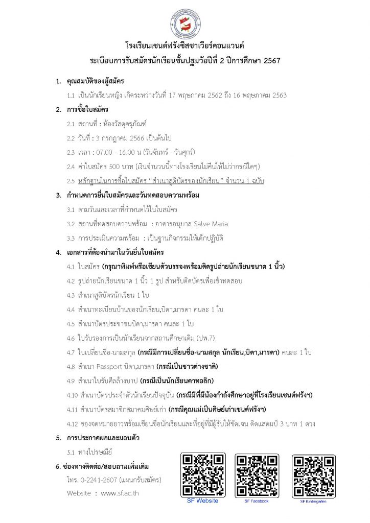ระเบียบการรับสมัครนักเรียนปีการศึกษา 2567